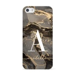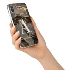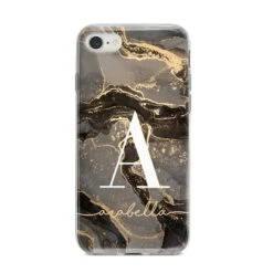 This personalised Black and Gold Marble design features a bold large initial and a custom script name underneath. Customise this unique marble design with your desired name for a contemporary and stylish phone case.