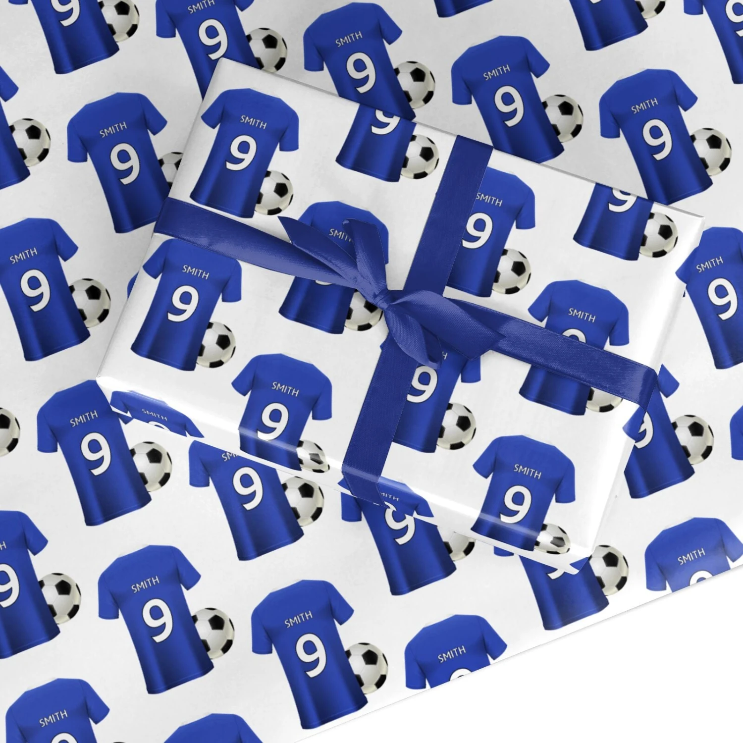 Our Blue Personalised Football Shirt Wrapping Paper is perfect for any blues fan. Customise the name and number of your choice. Perfect for bithdays of all ages.