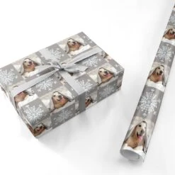 Our Christmas Dog Photo Wrapping Paper is a simple collage of a photo of your dog and a grey snowflake background. Perfect for pet lovers this Christmas. Upload a picture of your dog to make it your own.