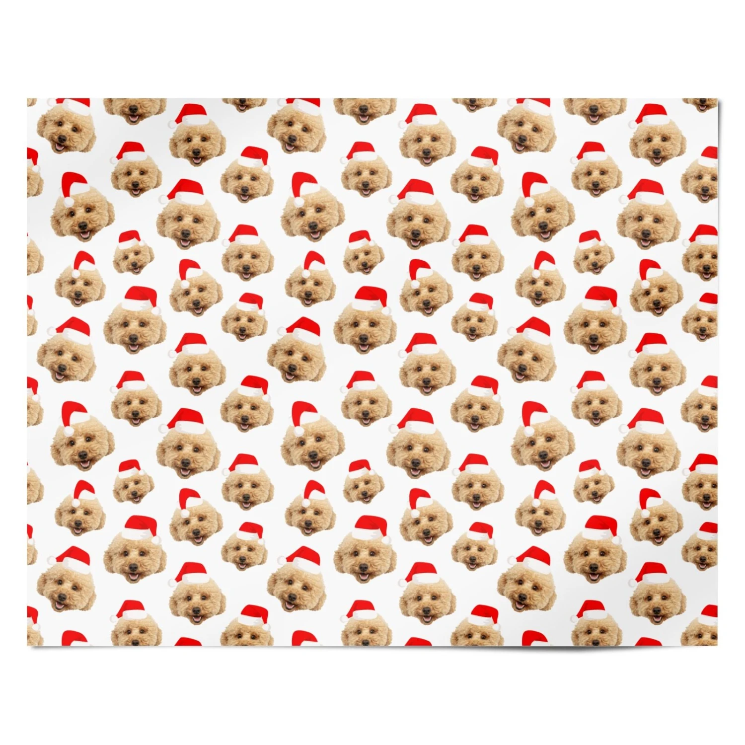 Personalise this Christmas Dog wrapping paper with a photo of your dog and we can take care of the rest. Our tool automatically cuts around the face of the dog and provides an instant preview. Featuring cute Santa Dogs patterned against a contrast background. Perfect for any Christmas gathering.
