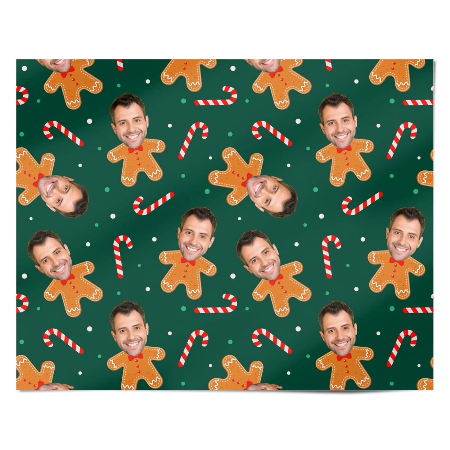 Personalise this stylish and fun Christmas Gingerbread Photo Face wrapping paper with a facial image of your choice. Simply upload the photo and our software automatically cuts around the face. A great festive design that will get everybody into the Christmas spirit. Preview your design right away and add to basket!