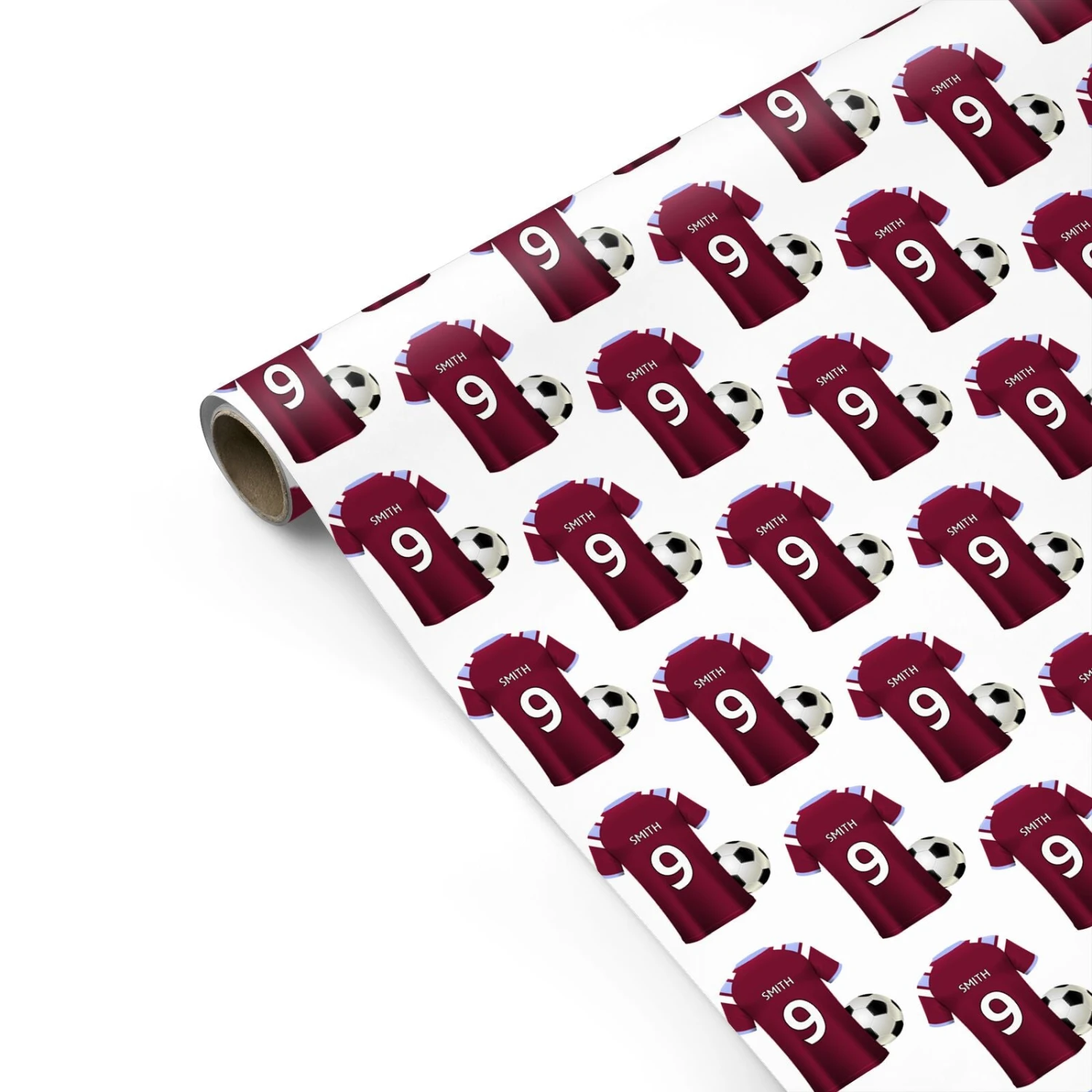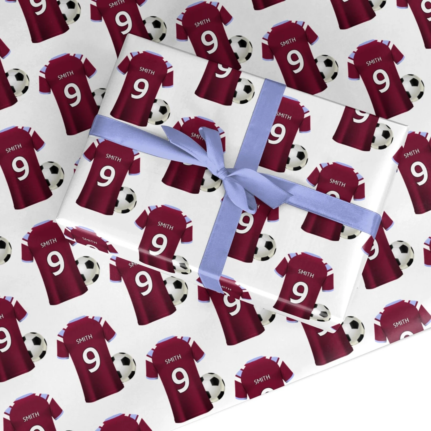 Our Claret and Blue Football Shirt Personalised Wrapping Paper is ideal for many football fans and can be customised with name and age.