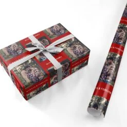 Our Couples Photo Collage Personalised Wrapping Paper is a red design, that allows for two names and four photographs. Upload your favourite pictures using our easy to use customiser tool, and create a personalised gift wrap this Valentine’s Day.