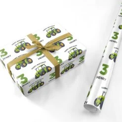 Make birthdays extra special with this personalised tractor wrapping paper, perfect for little farm enthusiasts. Featuring a playful green tractor design, this custom gift wrap allows you to add a name and age, making presents even more exciting. Whether for a toddler who loves farm vehicles or a child dreaming of countryside adventures, this fun and vibrant wrapping paper is a fantastic finishing touch for their big day. Ideal for farm-themed parties and birthday celebrations.