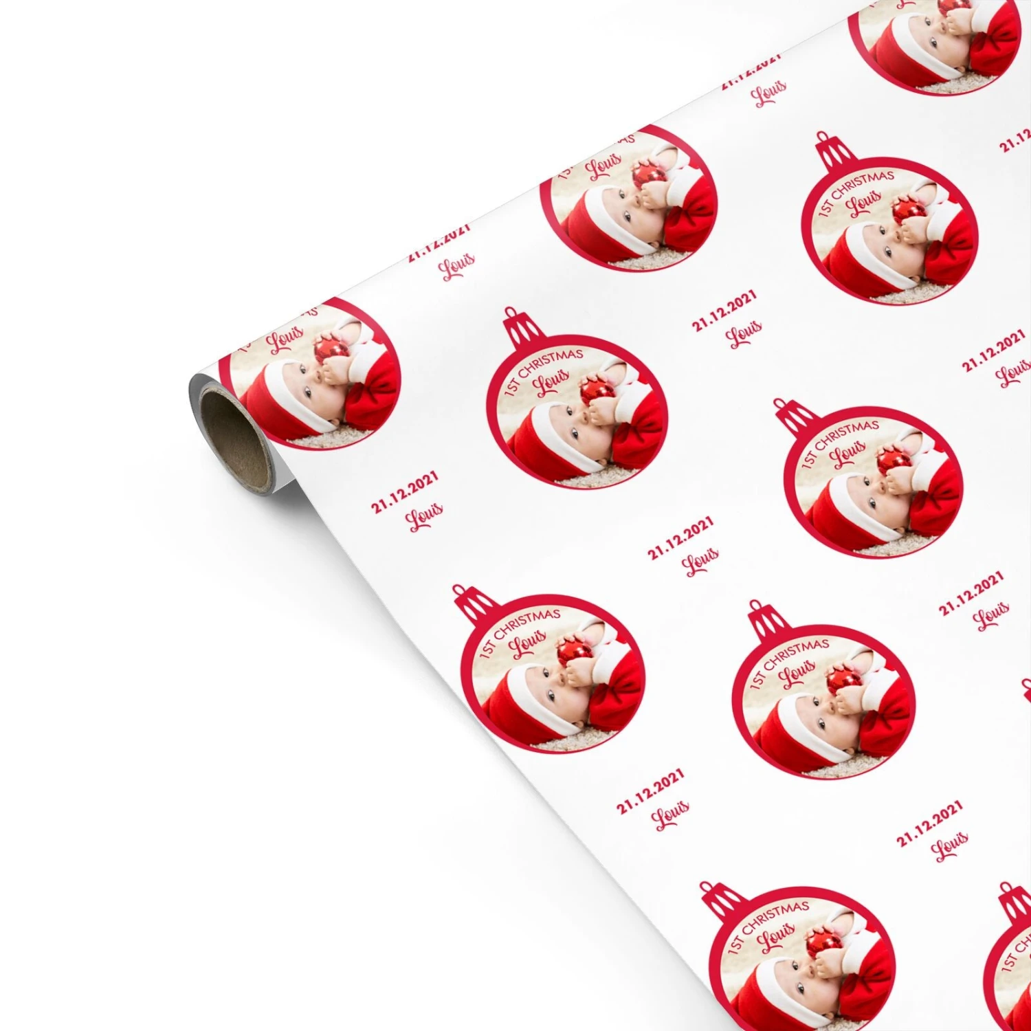 Our First Christmas Personalised Photo Wrapping Paper is simple design thats perfect fr the festive season. A baby’s first Christmas is a lovely milestone to mark, and there’s no better way than with a photo of your adorable baby. Customise with a name and date for finish the design.