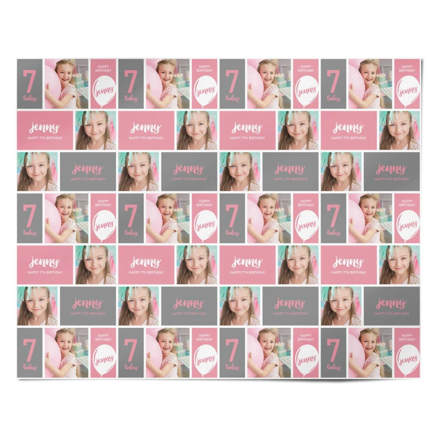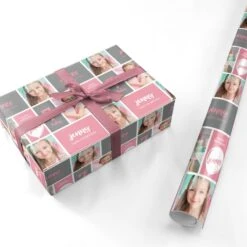 Our personalised photo wrapping paper is thoughtful and full of fun. Our Girls Personalised Birthday Photo Wrapping Paper is completely one of a kind – with our customisation services, you can upload photos and text of your choice. The gift wrap features repeated light pink tiles. You can then edit these to feature the name, age, and your favourite photos of the birthday boy or girl. These are all set in a sweet and stylish repeating print.Â