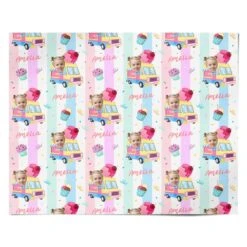 Delight your little one with our Girls Personalised Ice Cream Cart, the perfect way to wrap gifts with a personal touch. This adorable wrapping paper features a whimsical ice cream cart design, set against a charming striped pastel background, creating a joyful and memorable presentation.
