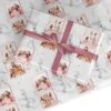 - Custom gift wrap is printed onto luxury 95gsm semi-gloss paper, FSC accredited paper.