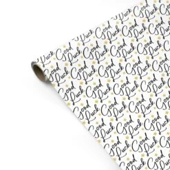 Send your best wishes in style with our elegant Good Luck wrapping paper. Featuring a modern black script and scattered golden four-leaf clovers, this premium gift wrap is perfect for celebrating new beginnings, exam results, graduations, new jobs, or any special occasion. The high-quality paper delivers a smooth finish and vibrant print to make your gift stand out. Whether for family, friends, or colleagues, this wrapping paper adds a thoughtful touch to your present. Ideal for all ages and any event where you want to say “Good Luck” in the most stylish way.