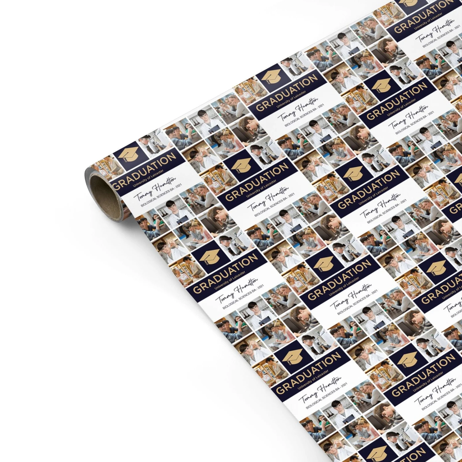 Our Graduation Personalised Photos Wrapping Paper design allows for multiple photographs to be uploaded. Extend your congratulations to a well deserving graduate!