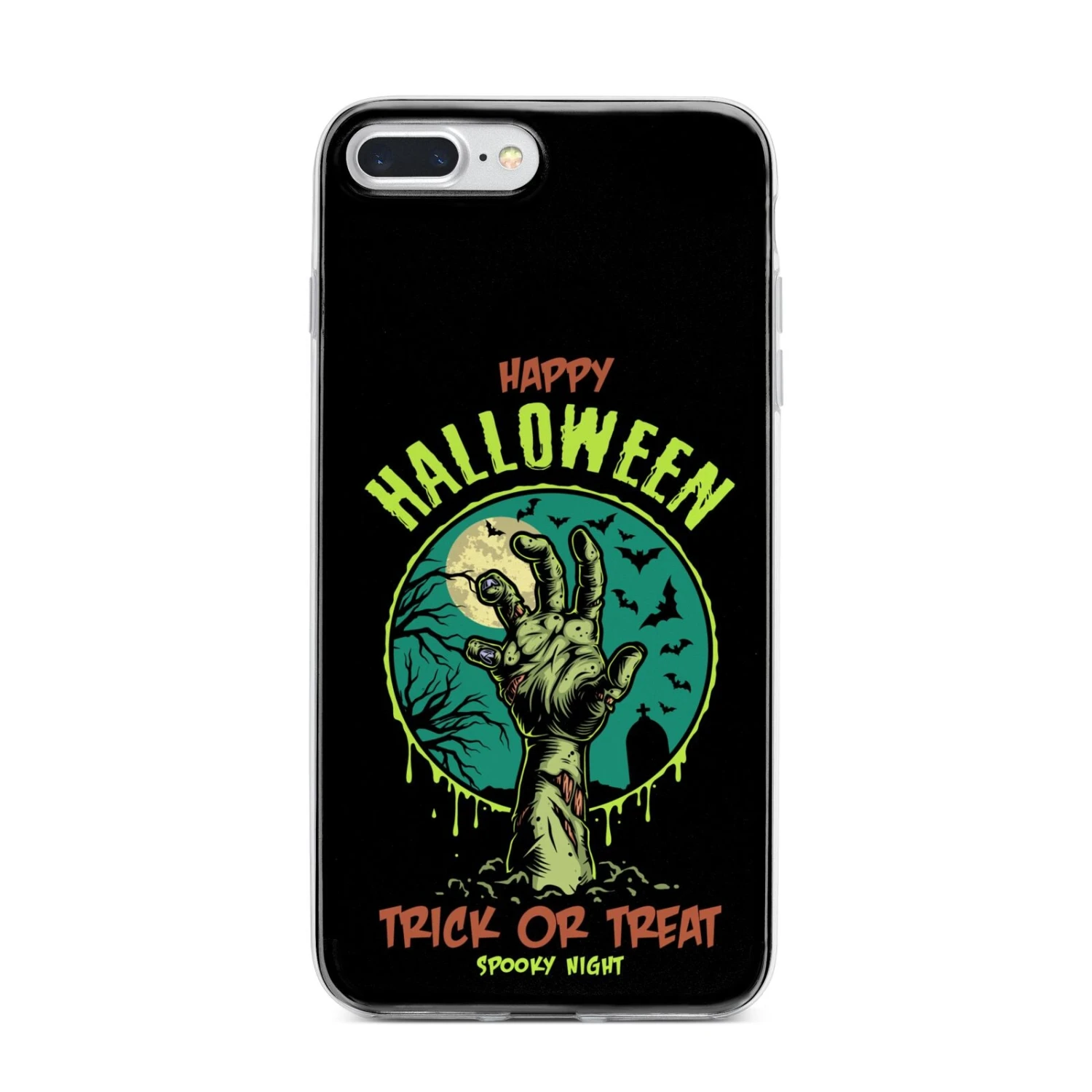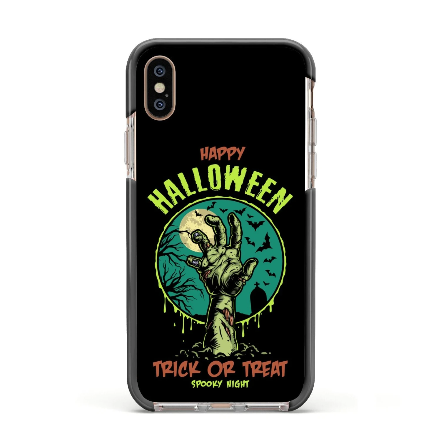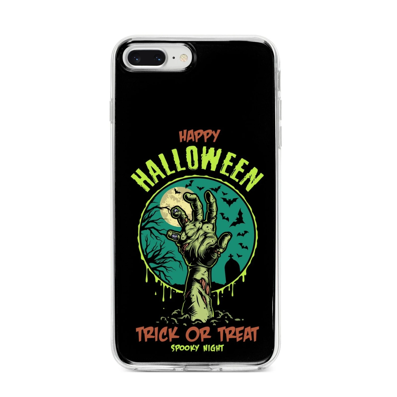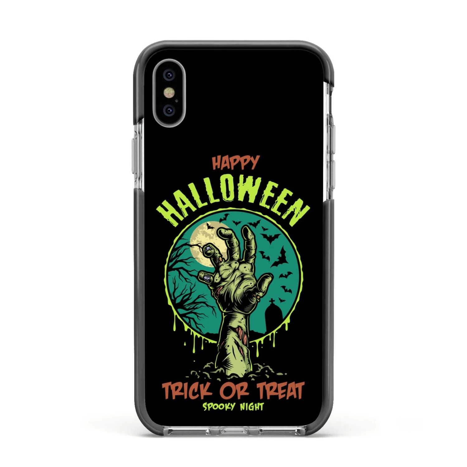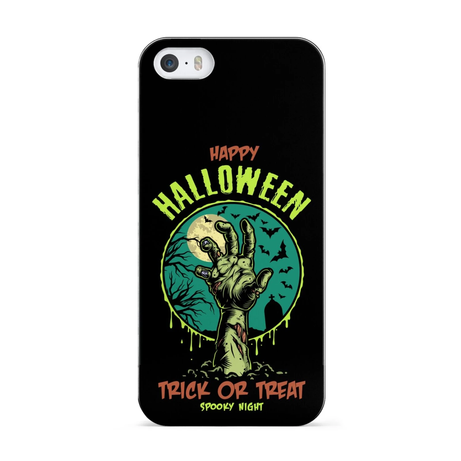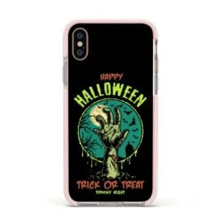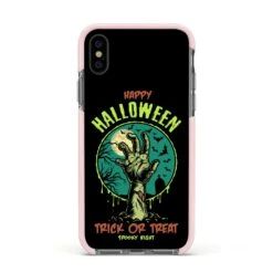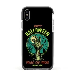 Introducing our Halloween Zombie Hand Apple iPhone Case. A vintage style Halloween illustration set against a bold background. Spook it up this October with this Trick Or Treat phone case. This unique design is a sure head turner that is sure to grab you attention.