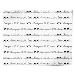 This classic, loved-up design is a chic yet super simple way to get into the Valentine’s Day spirit. This monochrome Repeating ‘I Love You’ String Wrapping Paper is designed to provide a modern alternative to the bright red hearts that are so synonymous with Feb 14th. The gift wrap design features a black scripted font that spells out ‘I love you’ in an ongoing, joined up-line. We’ve also used a transparent background for this design, to create the effect of these romantic messages being embossed onto your device.