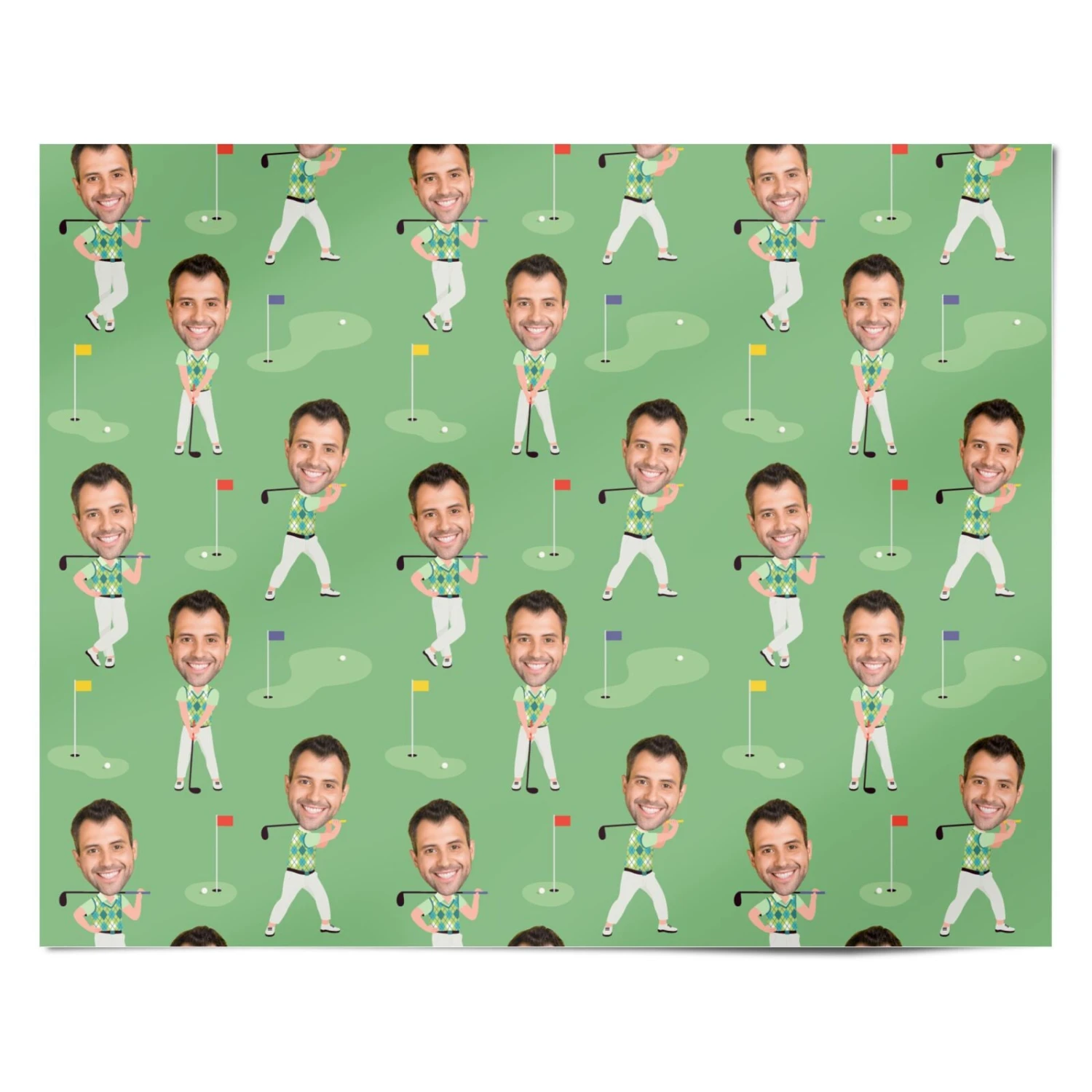 Add a playful and personal touch to his gift with our Mens Golf Photo Face wrapping paper – perfect for golf enthusiasts and those who appreciate a fun, custom surprise!