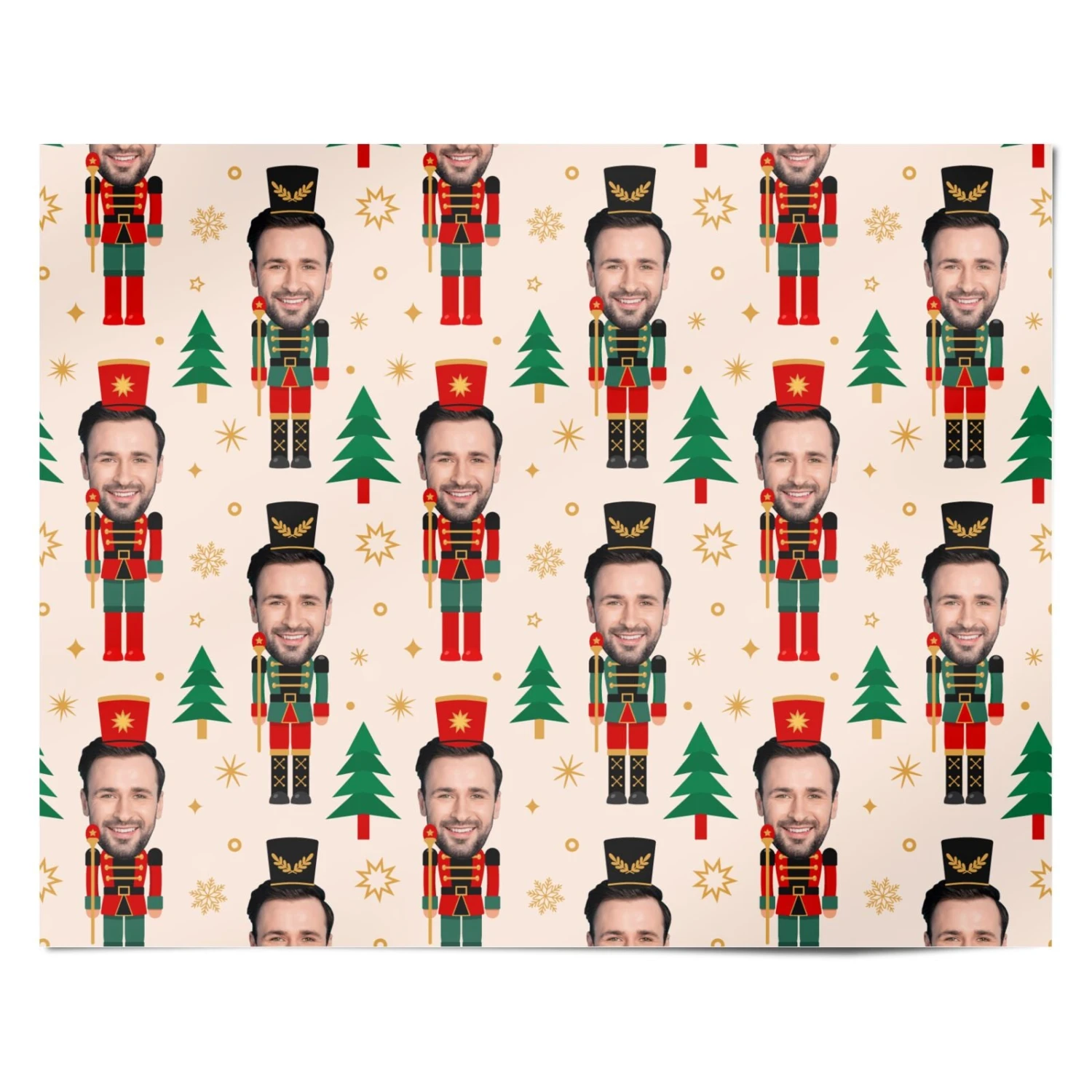 Our Nutcracker Face Photo Personalised Wrapping Paper is a fun take on the traditional Nutcracker Christmas pattern. Customise our Nutcracker with a photo of your face. Simply upload a photo and our clever editor will cut out the face for you and show you a live preview. The Nutcracker pattern looks great for Christmas and is a must have for men and boys.