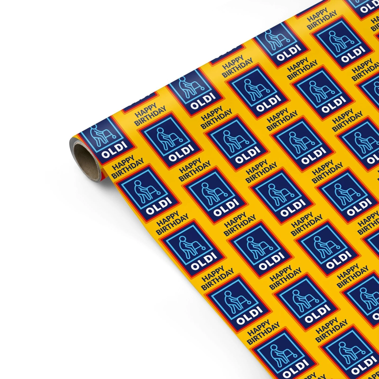 Feeling older? Embrace it with the Oldi Funny Birthday Wrapping Paper! This Oldi Funny Birthday Wrapping Paper is the perfect way to poke fun at getting older. Emblazoned with a playful Zimmer Frame design, it’s a cheeky nod to the realities of aging. But don’t worry – the birthday celebrant is sure to get a good laugh out of it! Inspired by the budget-friendly Aldi brand, this wrapping paper offers a unique, one-of-a-kind look that stands out from the crowd. Whether they’re turning 30, 40, 50 or beyond, this paper will make their special day even more memorable.