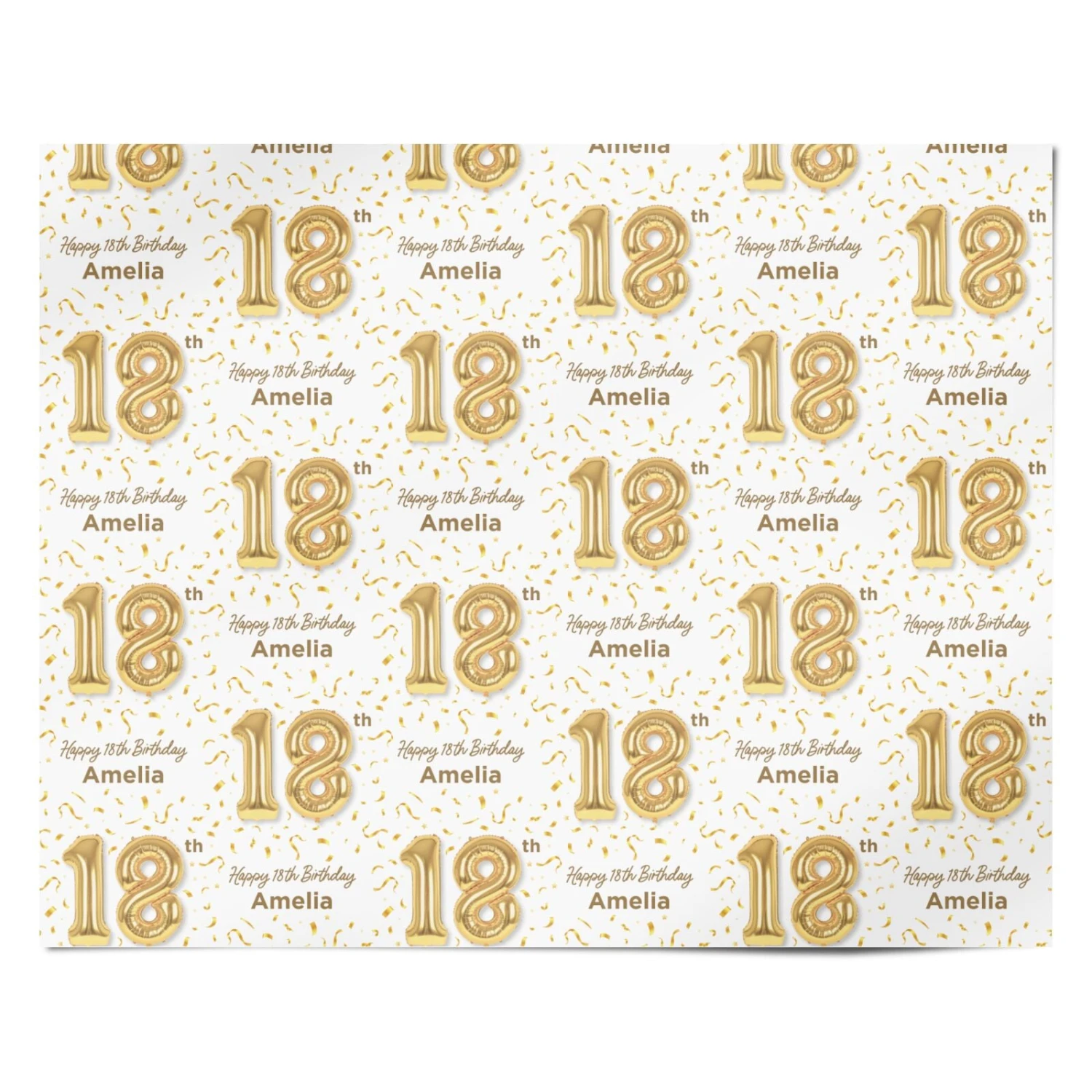 Celebrate in style with this Personalised 18th Birthday wrapping paper. This gold and white design looks great when team with the matching gold balloons. Complete your look with the full range of personalised eighteenth Birthday party decor. Customise with a name of your choice and view in our personaliser tool to see how it looks.
