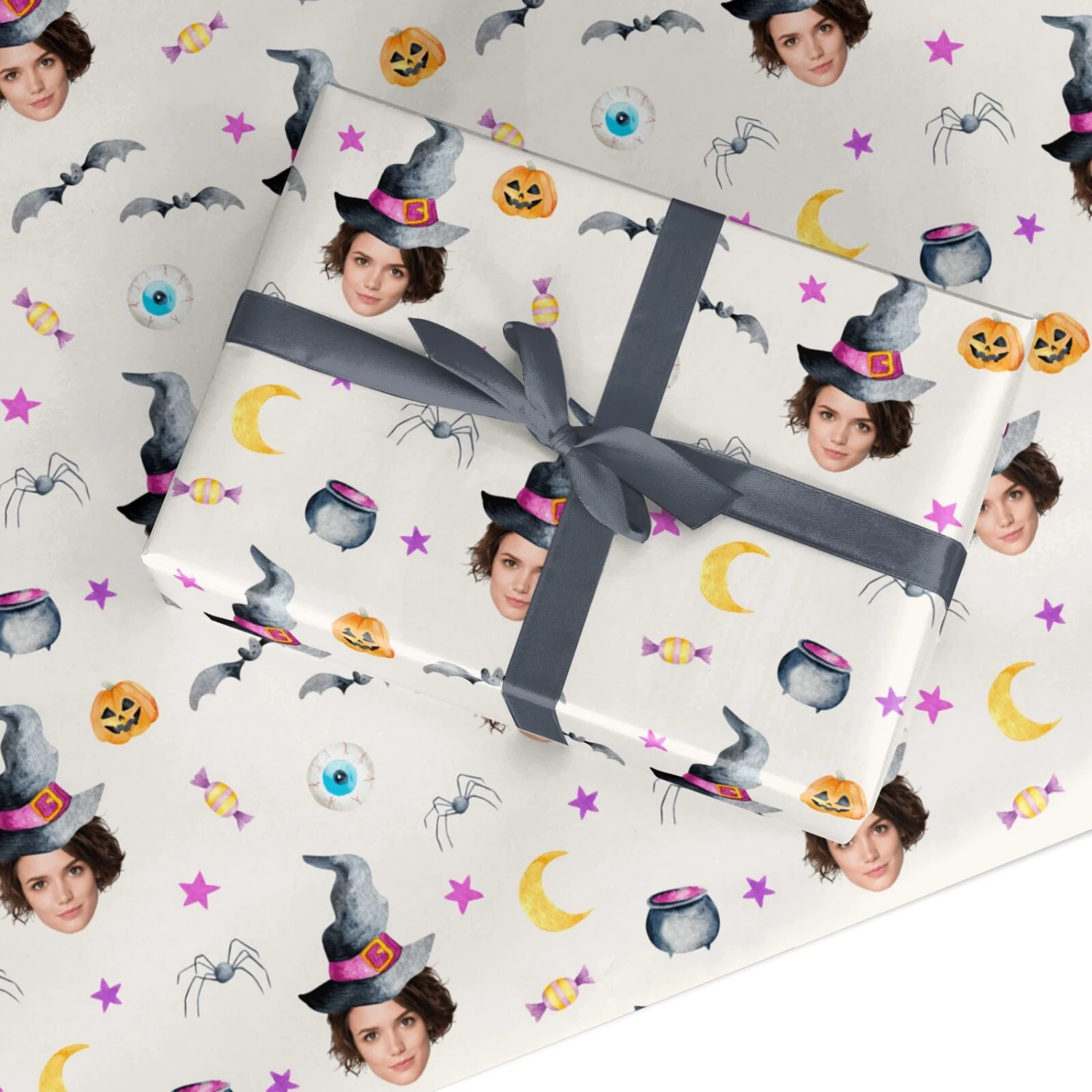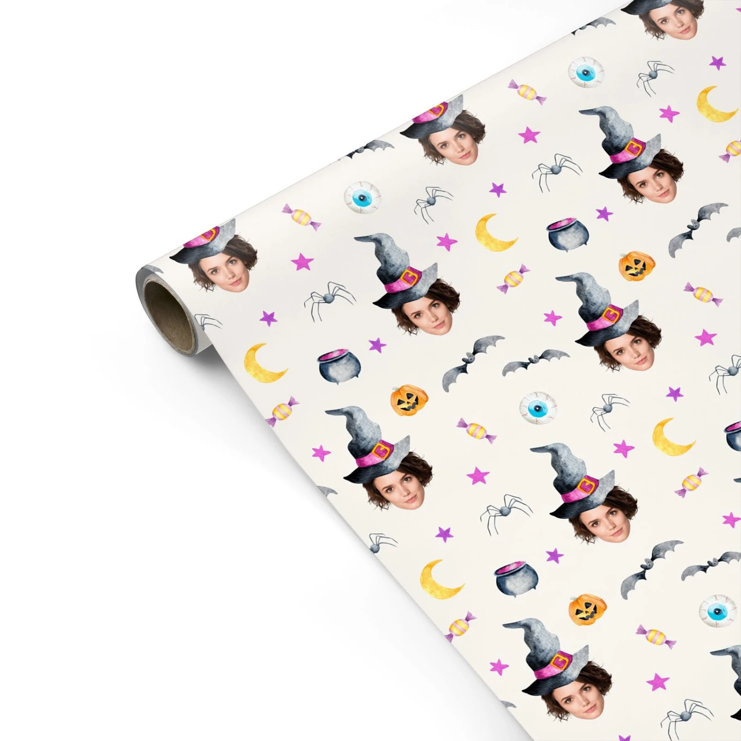 Unleash the spooky spirit of Halloween with our Personalised Halloween Magic Witch Photo wrapping paper!Â