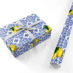 For this gift wrap design, we’ve taken inspiration from classic Mediterranean style. Our Personalised Mediterranean Tiles and Lemons Wrapping Paper features a repeating print of authentic blue tiles. We’ve also added bunches of bright yellow lemons into the design. Then, in the centre of the lemon, you can use our customisation services to type in your name. What’s more, by using a transparent background for this piece, it creates the effect of these tiles having been painted directly onto your gift wrap.