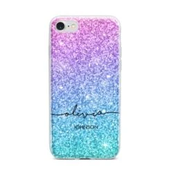 Our Multi-Colour Glitter with Text Apple iPhone Case has the appearance of shimmering with countless glittery sparkles. It’s the perfect way to add some bold glamour to your phone case. The design features mesmerising flecks of glitter, in blue, pink and purple hues. What’s more, using our customisation tool, you can incorporate your full name into the design with boldly contrasting typography fonts.