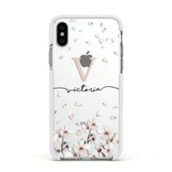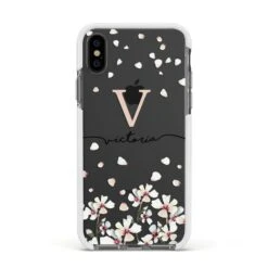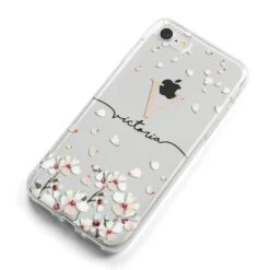 This beautiful Personalised Petals Apple iPhone Case comes in the form of a watercolour design of falling white petals, almost like confetti, along with spring garden flowers. The design can be personalised with a taupe coloured monogram initial, and a black handwritten name. This botanical design is perfect for the spring and summer, and the commencement of sunnier weather. The design has no background colour, which means on our transparent design the background will be see through, or white if printed on fabrics. The clear areas are particularly impressive as they contrast so well against the petals and flowers. Customise this design to make it your own.