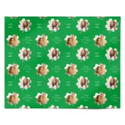 Our Personalised Photo St Patricks Day Wrapping Paper is a bright green design that allows for two photos to be uploaded into the shamrocks. There’s also space to upload names. The design also features the text Happy St Patrick’s Day.