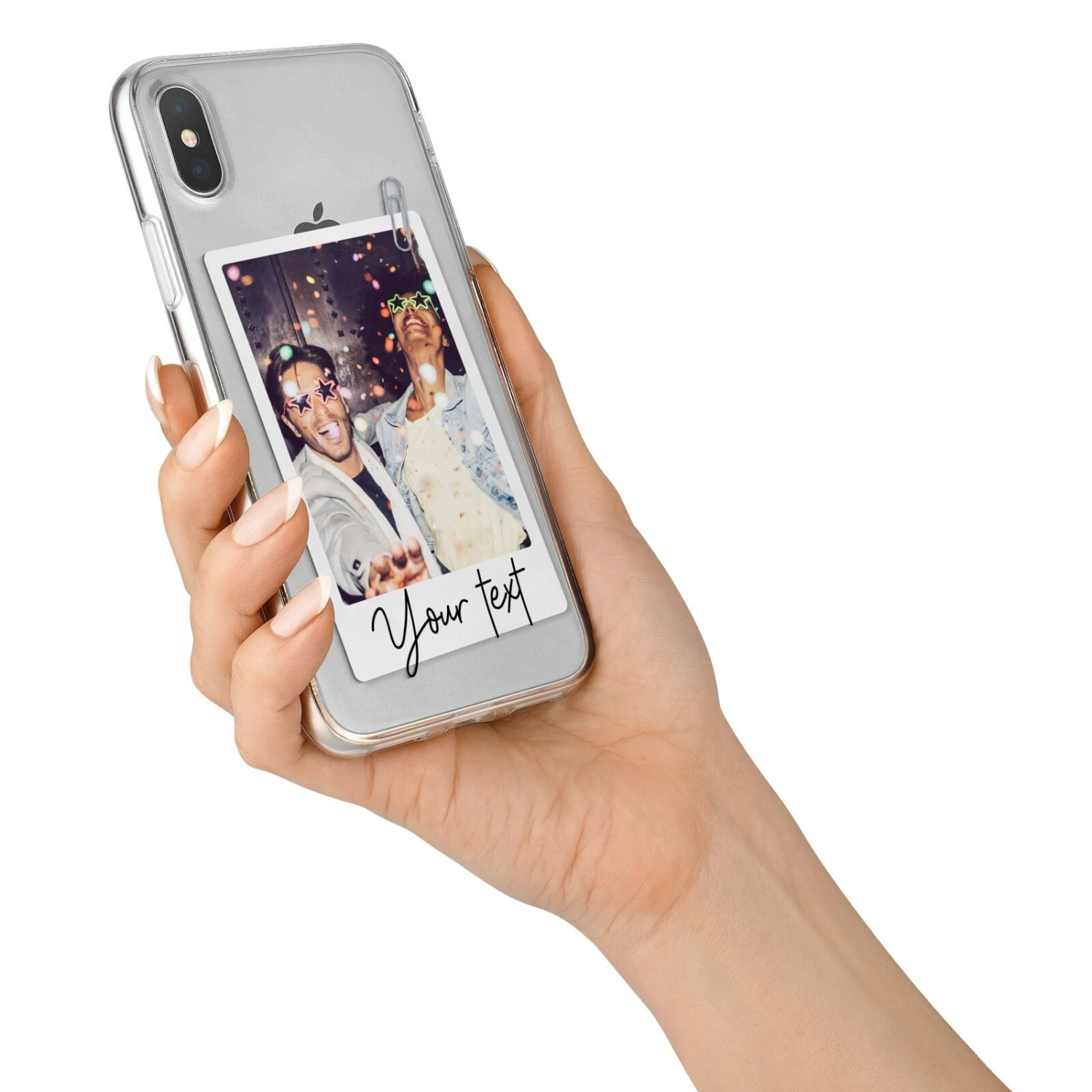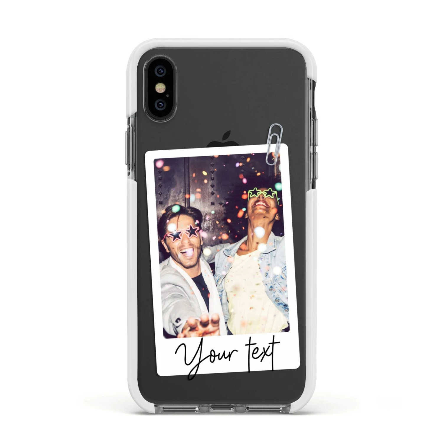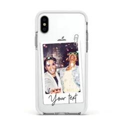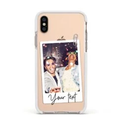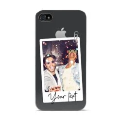Our Personalised Photo with Text Apple iPhone Case is a simple customised design that allows for one picture to be added and some text. The photograph can be uploaded using our simple preview tool, where you can crop and rotate your image into the perfect position. When done, simply add some text, either a name, a short sentence, quote or saying, for a truly unique design. The background of this pattern is transparent, which looks great on our clear cases, meaning your device colour shows through. On our fabric and paper products the materials original colour will show through. Your uploaded photograph will be inset into the picture frame, giving the look of a retro photo. Perfect for Father’s Day, or everyday. Choose an image of your family or friends to create a truly one of a kind phone case.Â