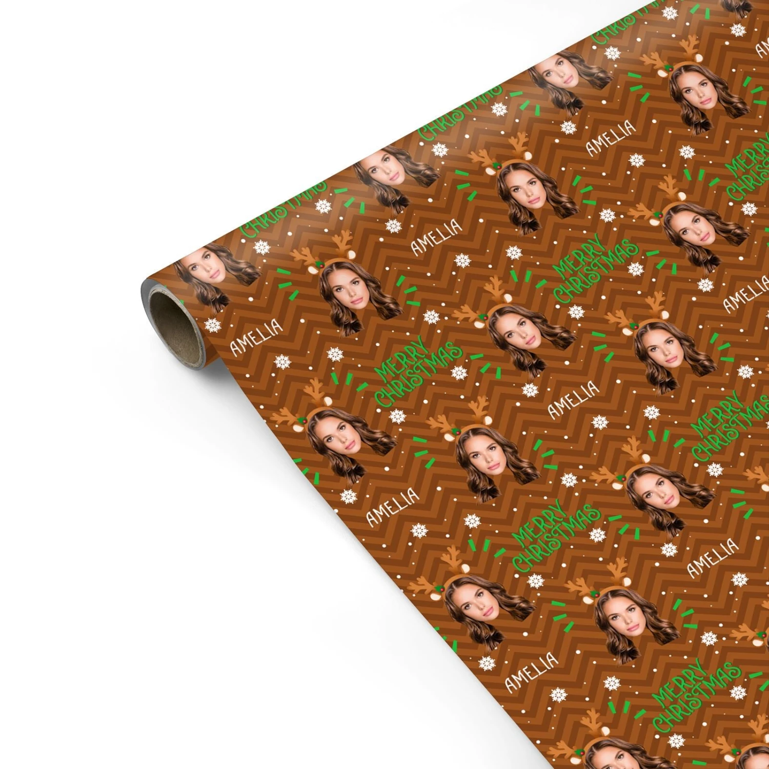 The cutest Christmas wrapping paper we ever did see! Featuring photo face elements with Reindeer antlers above. Simply upload an image and our software automatically cuts around the face for you. Preview your Christmas Reindeer Photo wrapping paper in our customiser tool. A great quirky design for Christmas that is sure to bring Christmas spirit to the table.