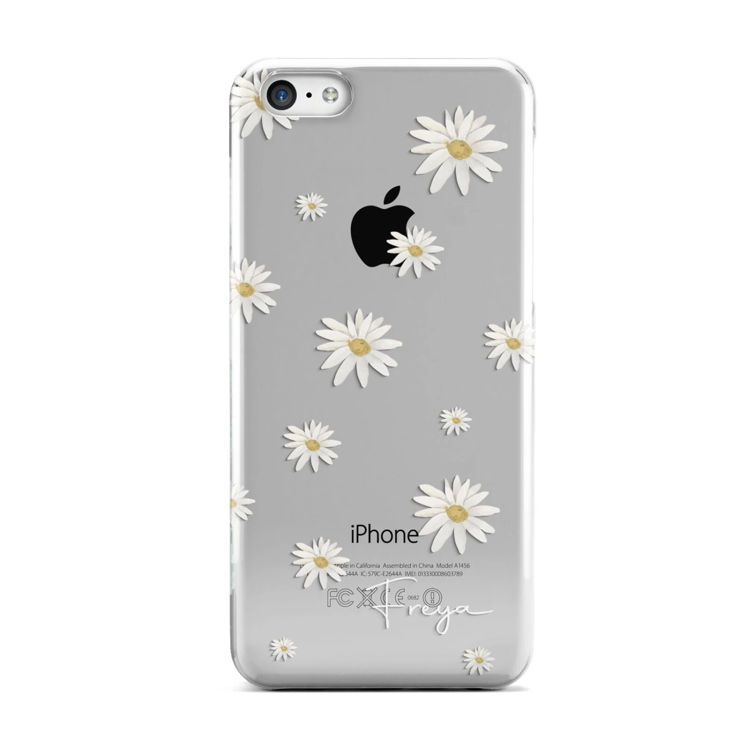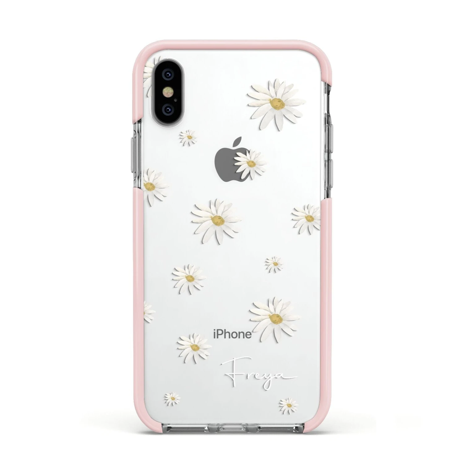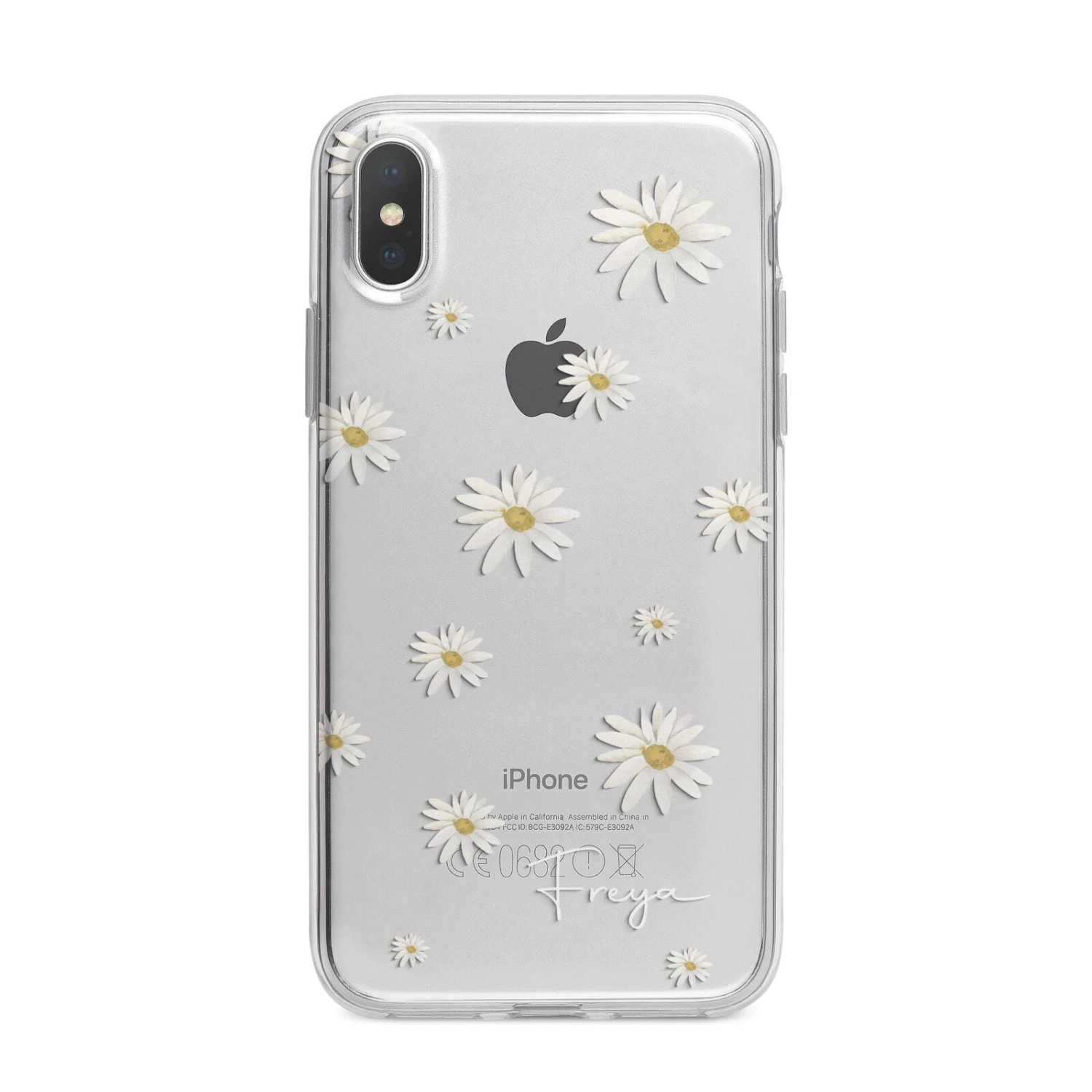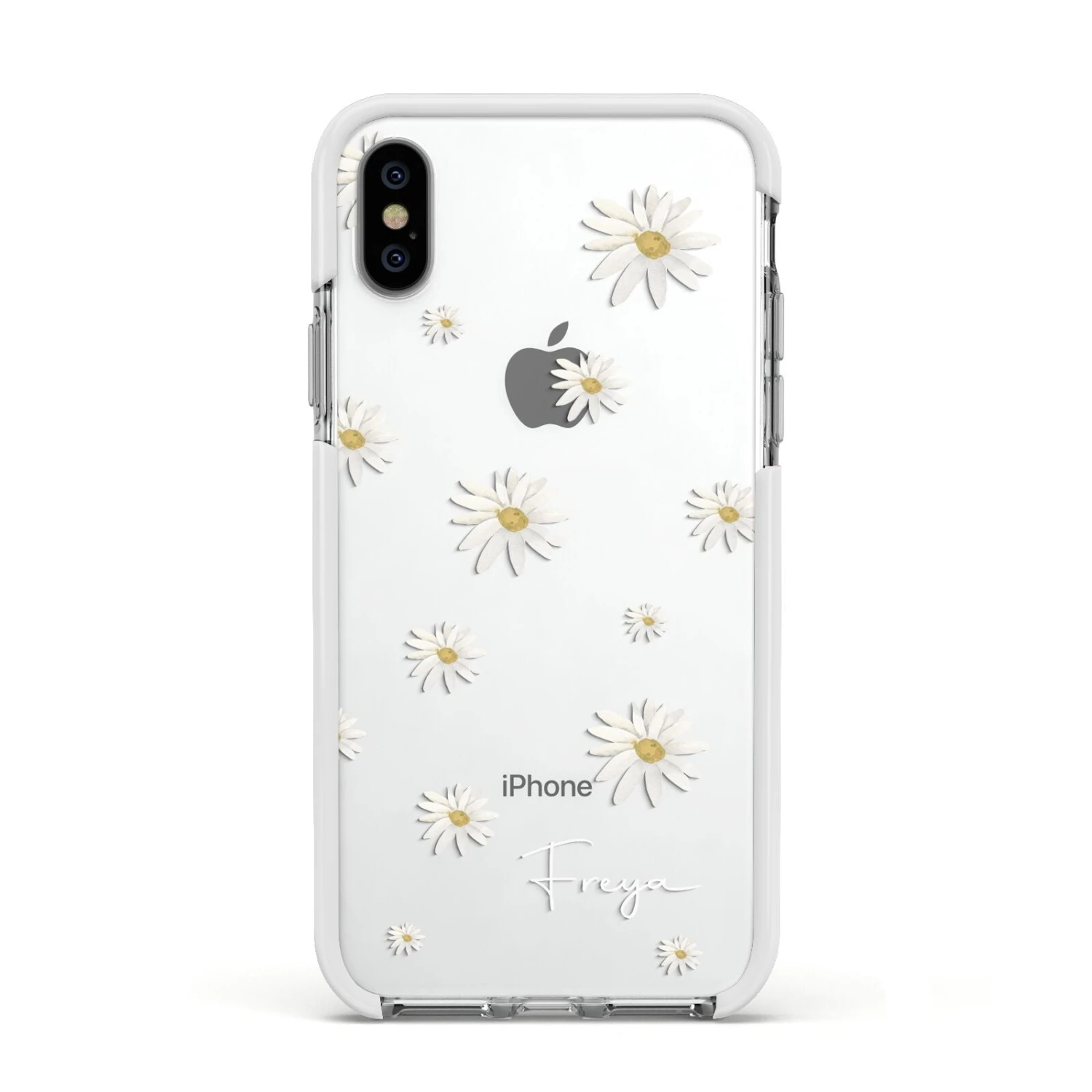 Our Personalised Vintage Daisy Apple iPhone Case is set on a transparent background with a custom name. Add any name you like and we will print it in our handwritten font.