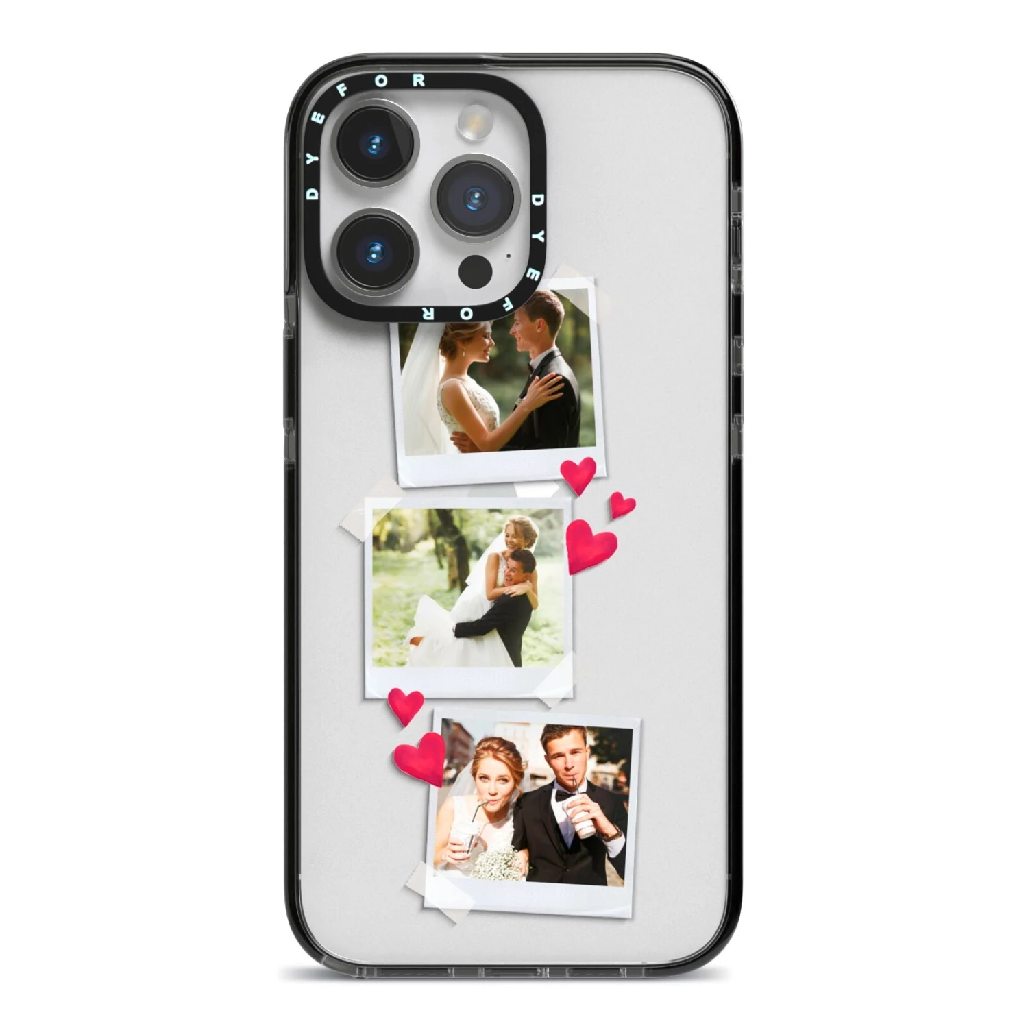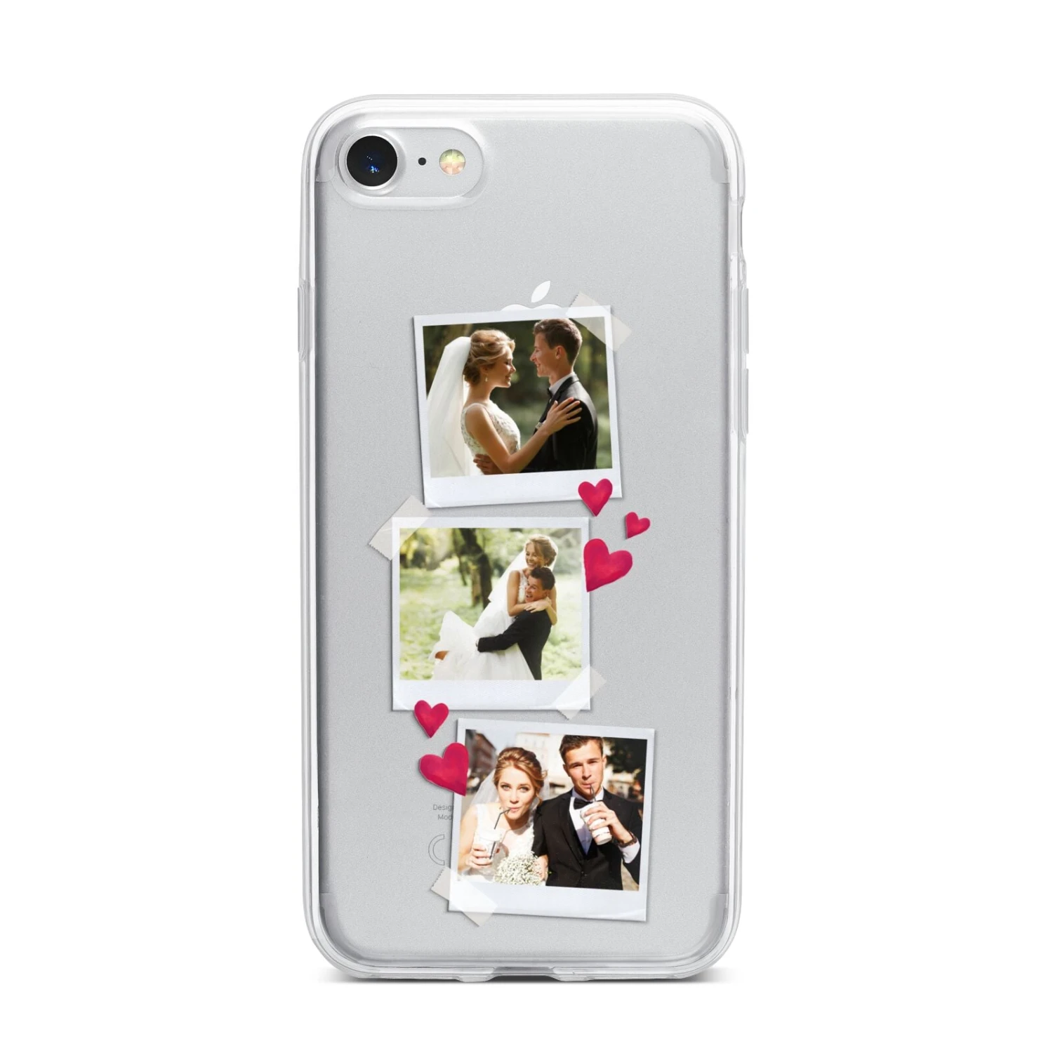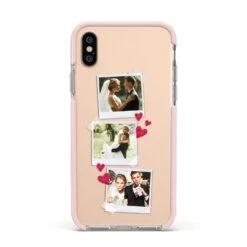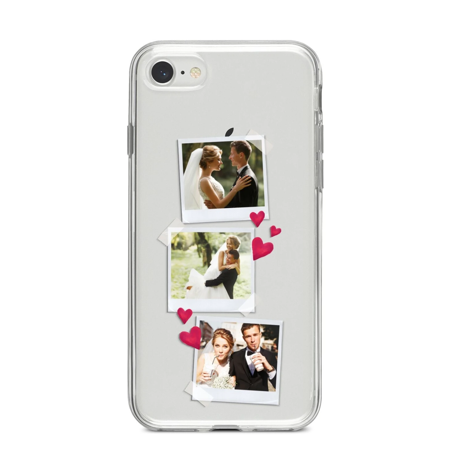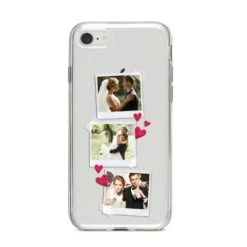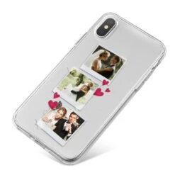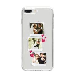 Our Wedding Snaps Montage Apple iPhone Case is the perfect blend of fun and sentimental. It provides you with a quick, easy and affordable way to feature your three favourite wedding photographs on your phone case. This way, you can take these treasured photos with you wherever you go. This design allows users to feature three photographs in a Polaroid style. Then, thanks to the transparent background, these are made to look as if they are taped to your device. To finish off the piece, these photos are adorned by sweet little heart decals.Â