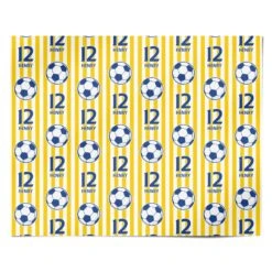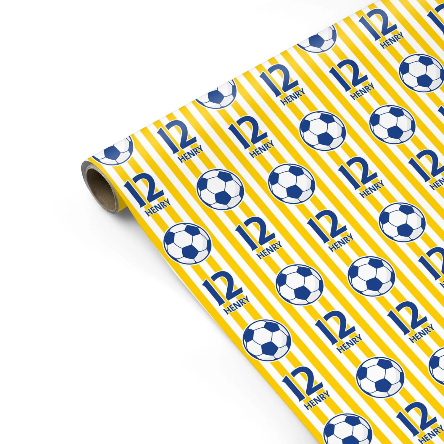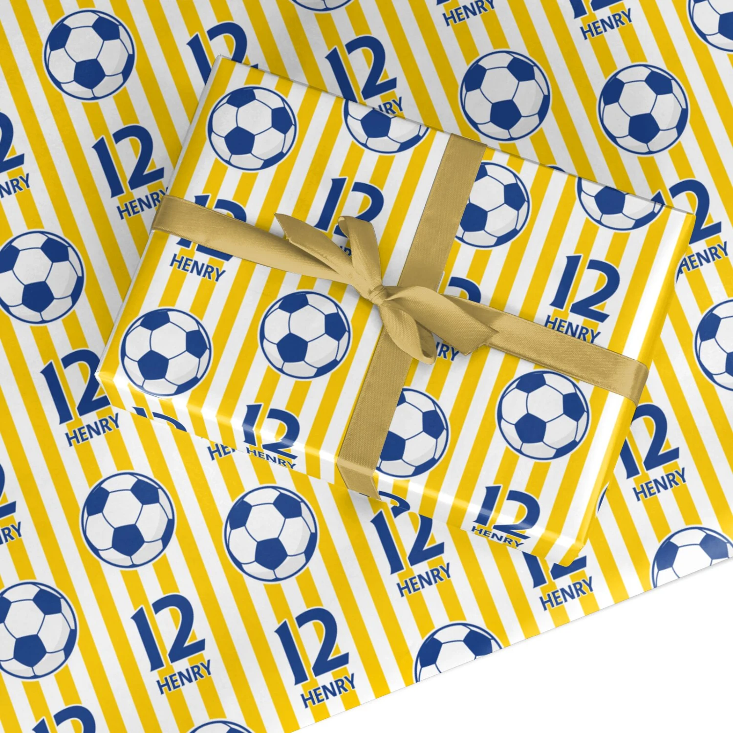 Celebrate a football lover’s special day with this customised yellow and blue football wrapping paper, perfect for birthdays and sports-themed gifts. Featuring bold stripes, football icons, and the recipient’s name and age, this unique design is great for kids, teens, and die-hard football fans. Whether it’s a birthday, a team celebration, or a gift for a sports-mad friend, this high-quality custom gift wrap adds a personal touch. Printed on premium wrapping paper, it ensures crisp folds and a polished look. Ideal for making any football-themed present extra special!