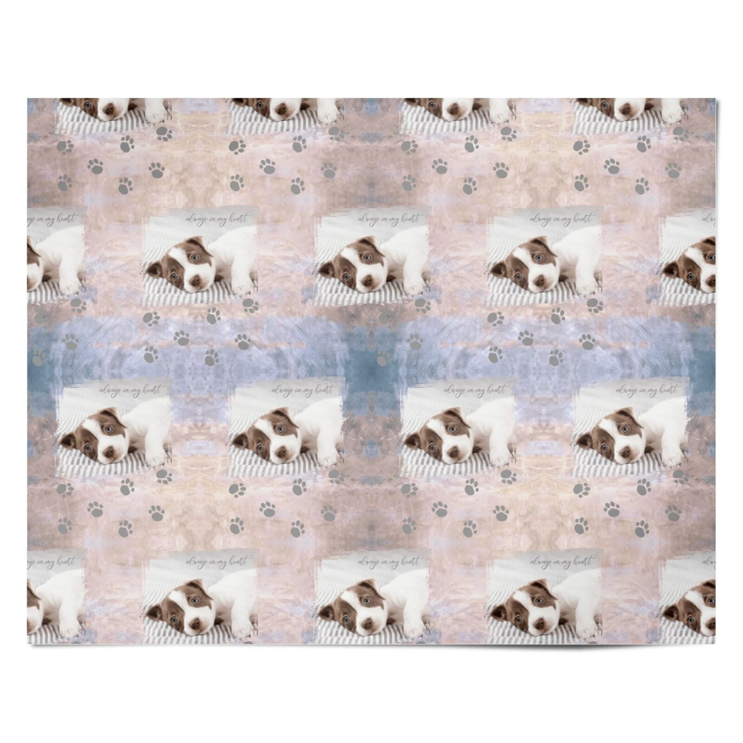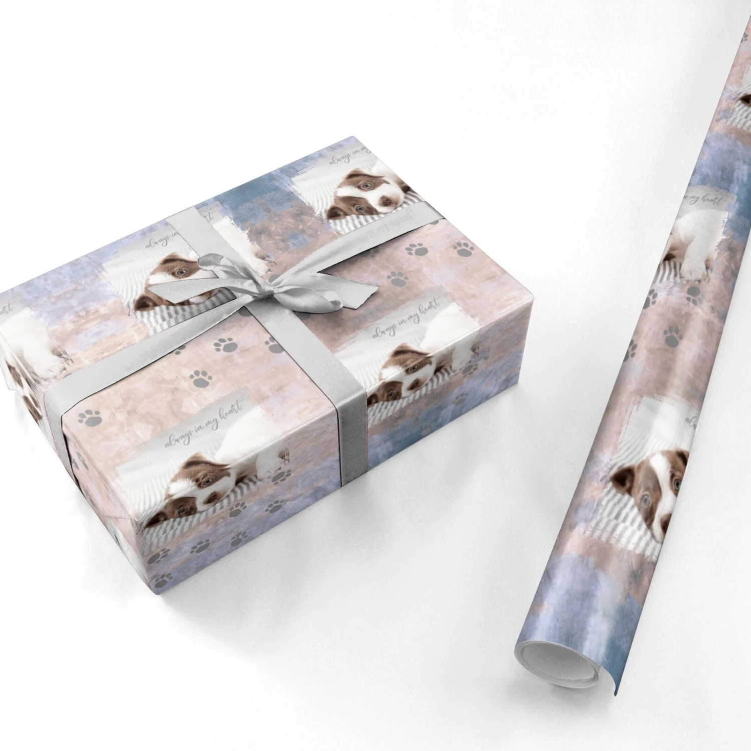 Our Pet Photo Personalised Wrapping Paper is a lovely design that allows for your favourite photo of your dog, cat or other pet to be uploaded. The design features a textured background with footprints to the bottom of the design. This can also be used as a pet memorial gift, to remember your precious pet. Coping with loss of a beloved animal is not easy. Help the bereaved with a sympathy gift that sends condolences and support.