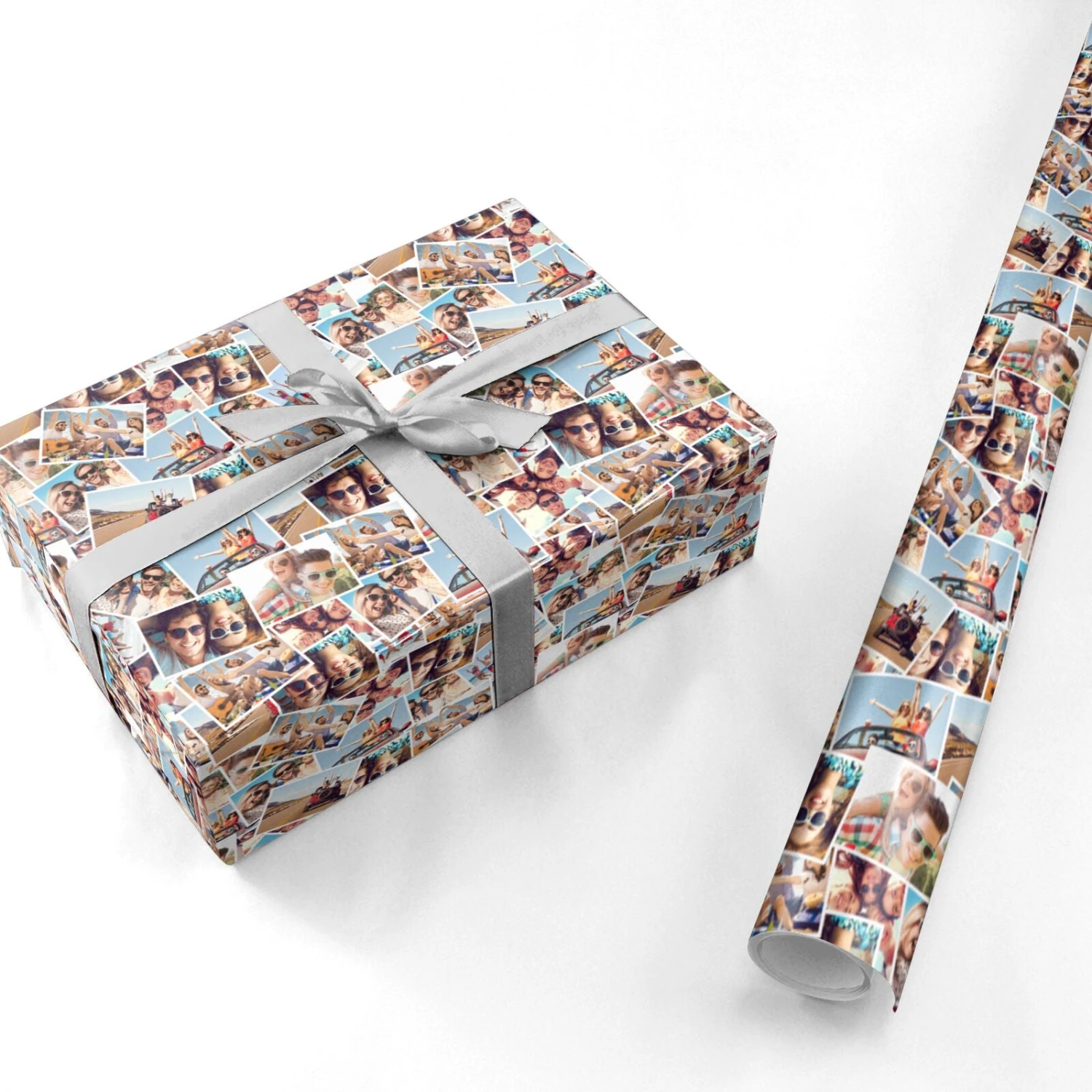 Our phones are absolutely filled with photographs of our adventures, get-togethers and special occasions. But, often, we’ll almost never have a proper look at these photos, because they’re stuck way back in our phone’s photo feed. So, we’ve created this random scattered photo montage gift wrap design to help you immortalise your favourite photographs, in a sweet and stylish keepsake. Our Photo Montage Wrapping Paper allows you to upload 24 of your photos, then position them in this scattered collage grid. It makes a wonderful gift for a loved one, or a wonderful, sentimental treat for yourself.Â