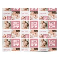 Celebrate Mother’s Day in style with this stylish photo collage design. Featuring a grid collage of photos and text of your choice. Make their Mother’s Day gift extra special with this personalised wrapping paper.Â