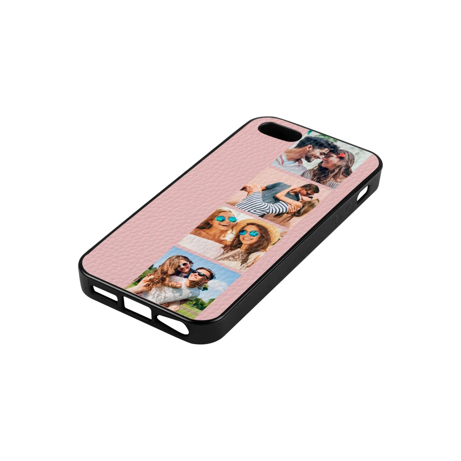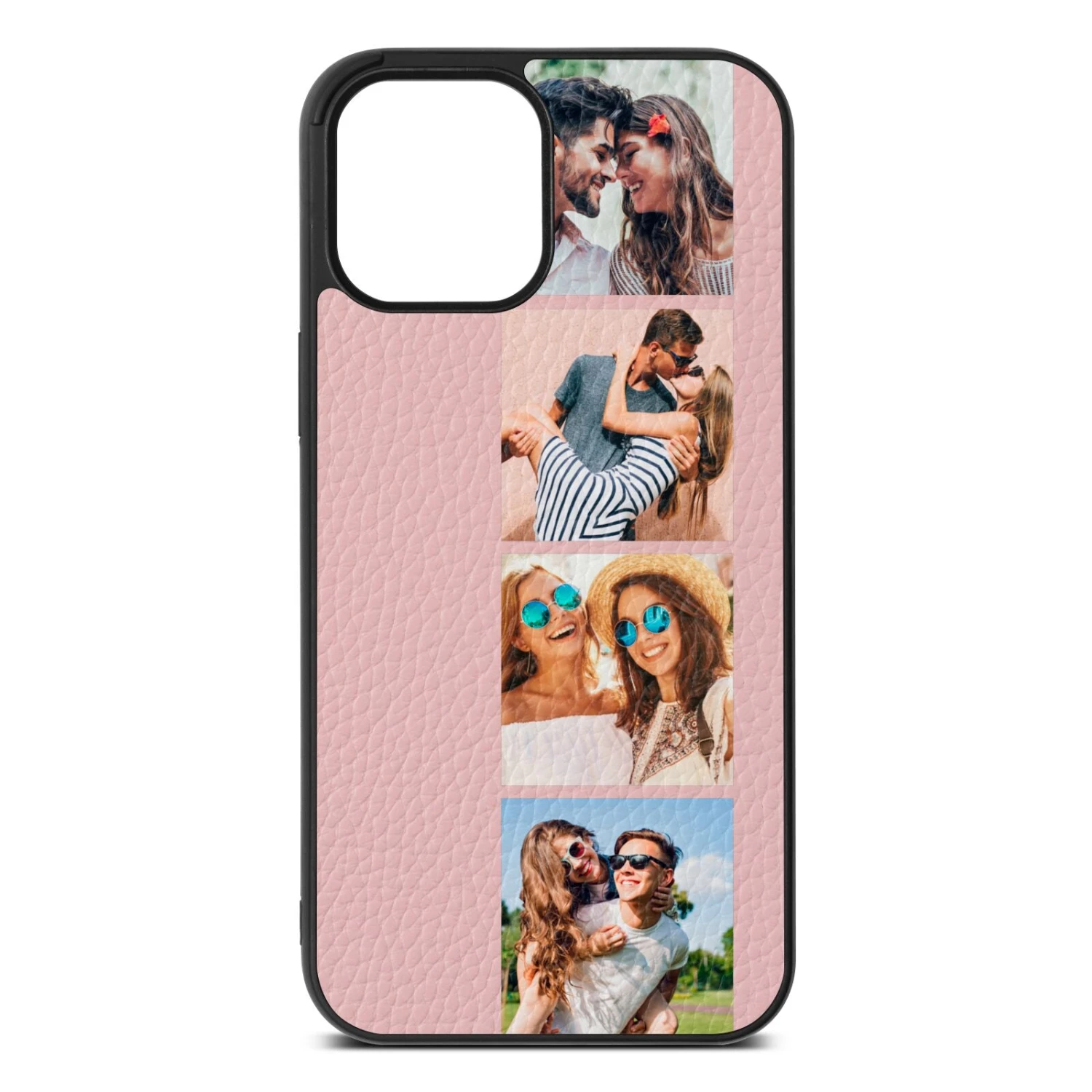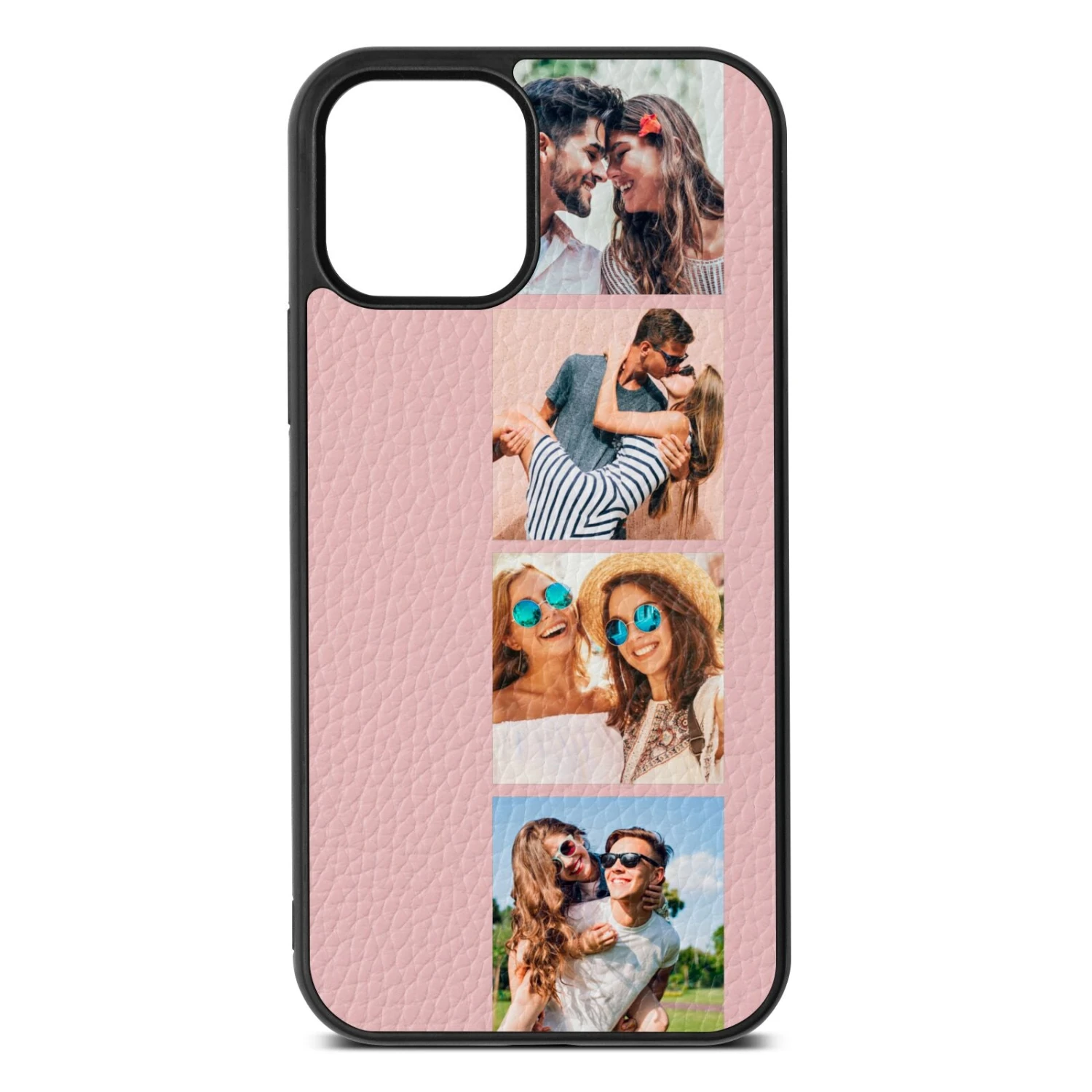 Photo Strip Montage Upload Pebble Leather Pink IPhone Case