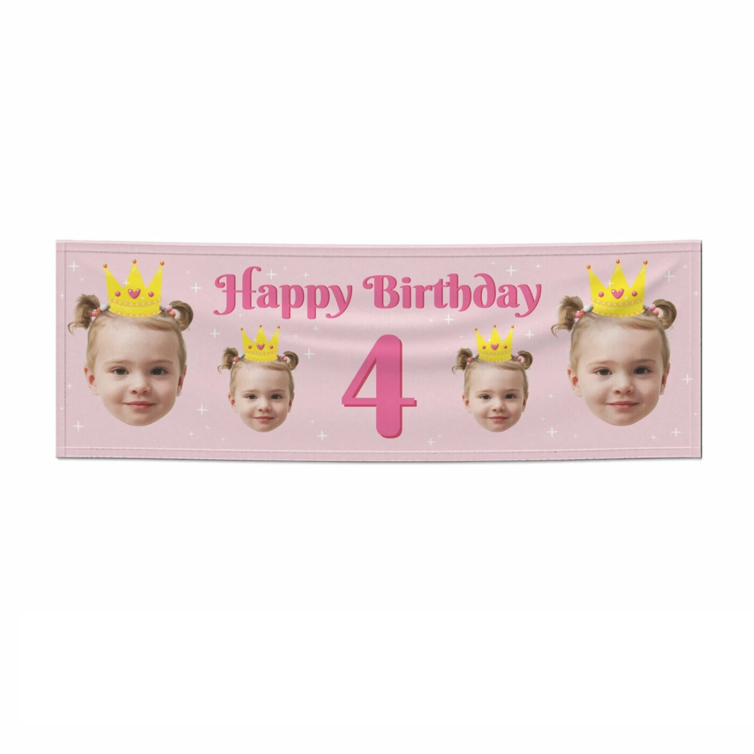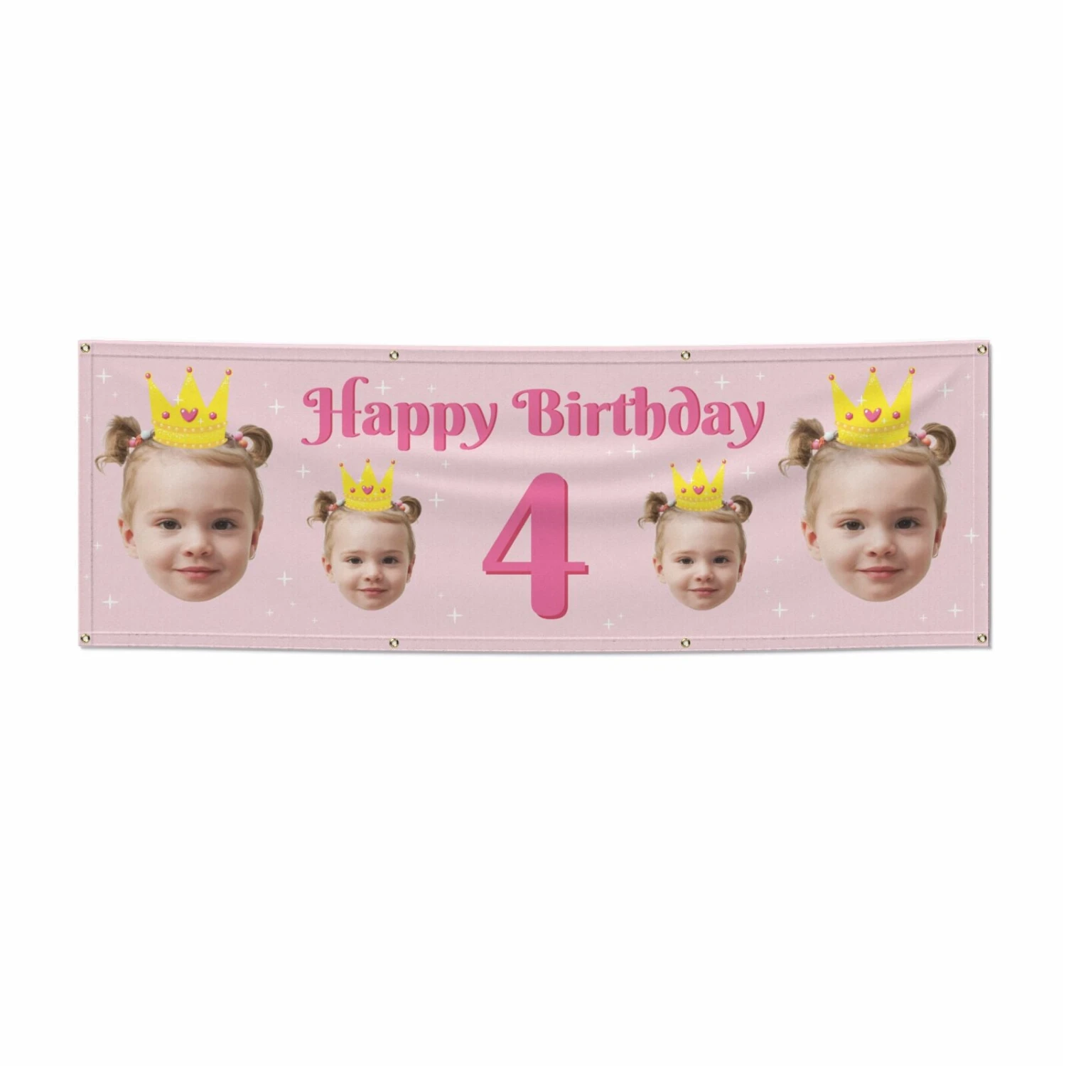 Wow the recipient with this adorable Princess Birthday Photo Face Banner. Featuring a repeated pattern of a face image of your choice wearing an adorable crown! The perfect Banner for any aspiring little princess.