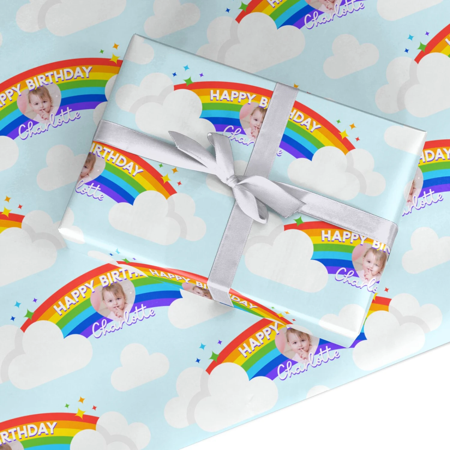 Our colourful Rainbow Happy Birthday Personalised Wrapping Paper is a great design for any childrens or adults birthday. Suitable for both boys and girls, this vibrant design allows you to upload your own photo and name.