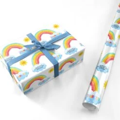 Our Teacher Appreciation Wrapping Paper is a thank you wrapping paper for school or Nursery. Perfect for both teachers and teaching assistants, the design features a rainbow with sunshine and clouds. Within the clouds is the words: “thank you for being such an important part of my story”.