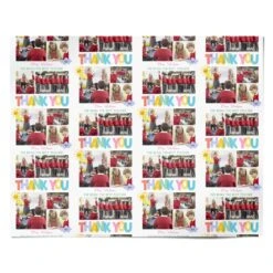 Our Thank You Teacher Photo Wrapping Paper is a great personalised photo upload design from any school or nursey student to their teacher. Say thank you to your child’s teacher at the end of the school year for all of the hard work they have committed. The design features brightly coloured “Thank You” text and room for 5 photos of either your child or classmates. The design also allows you to customise with the teachers name.