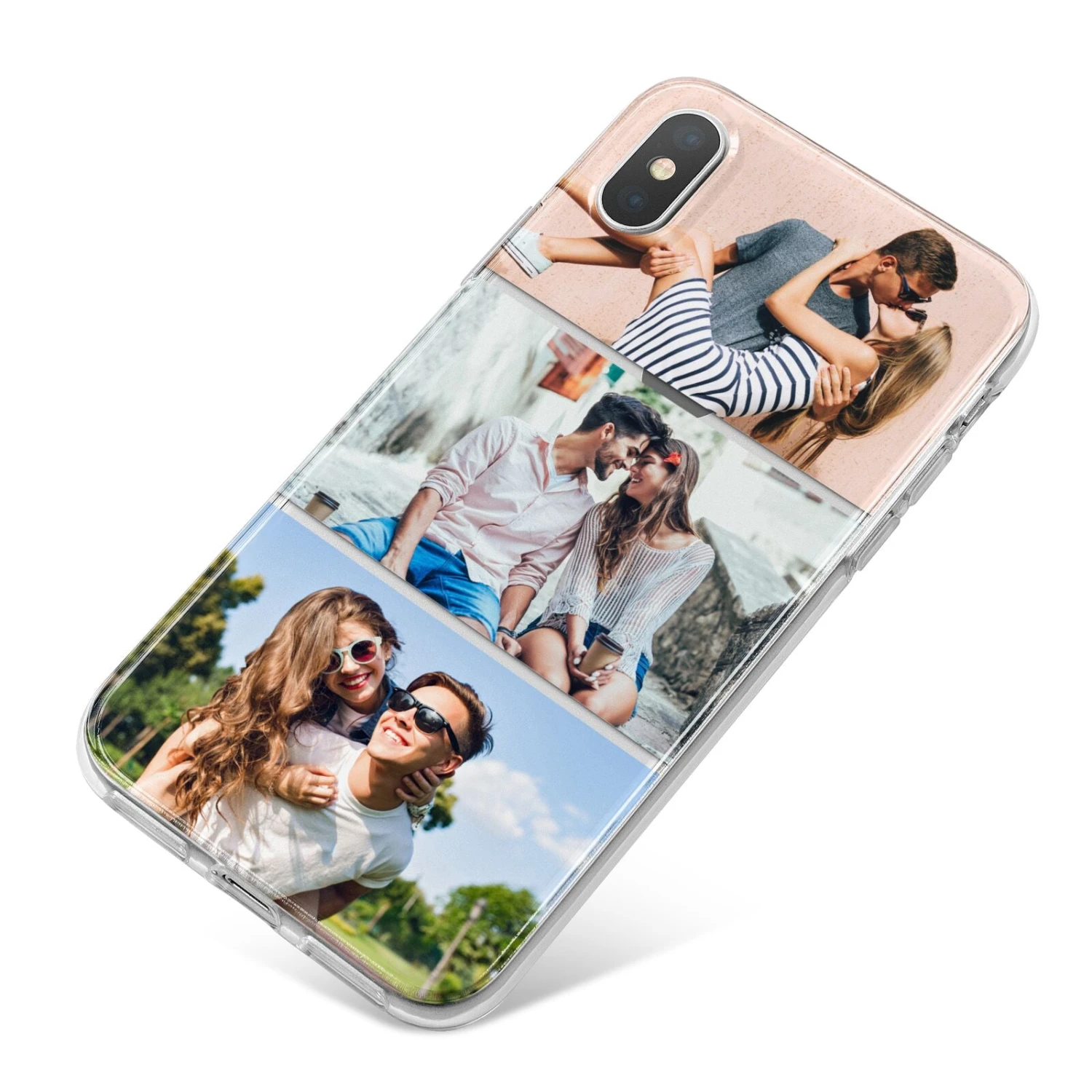 Super simple yet lovely three photo collage Apple iPhone Case. Each of the three photos in this collage are fully customisable, so you can upload and crop three of your own favourite pics using our online cropping tool, so you’ll know exactly what it looks like in real life. On a simple grey border to really make those pictures pop, this is such a cute way to show the world three of your favourite memories, and gives you something to smile about each and every time you look at your phone case!