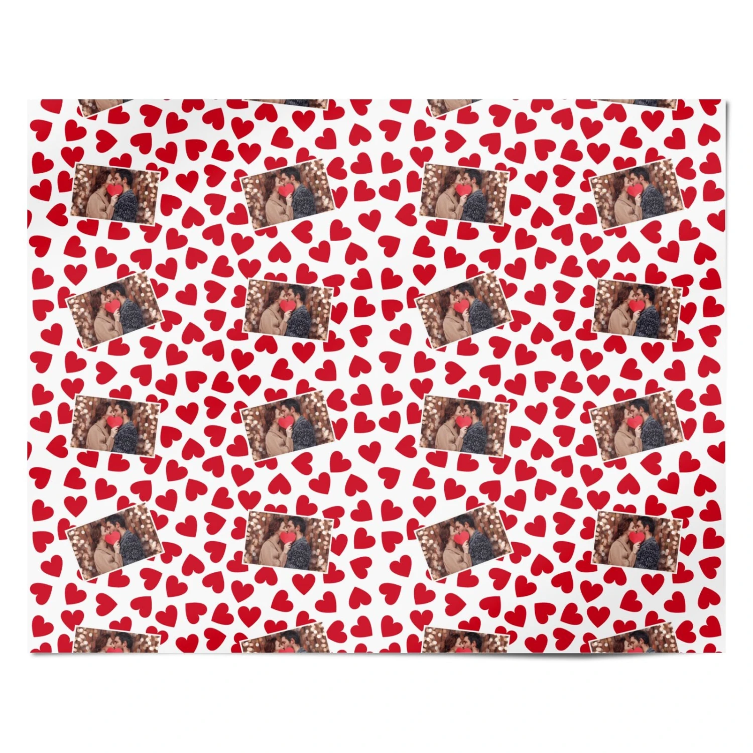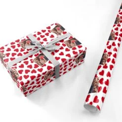 Our Valentines Day Heart Photo Personalised Wrapping Paper is the perfect way to create a custom design for your loved one. The design features bright red love hearts, patterned around your favourite picture. Upload a picture of you both to customise.