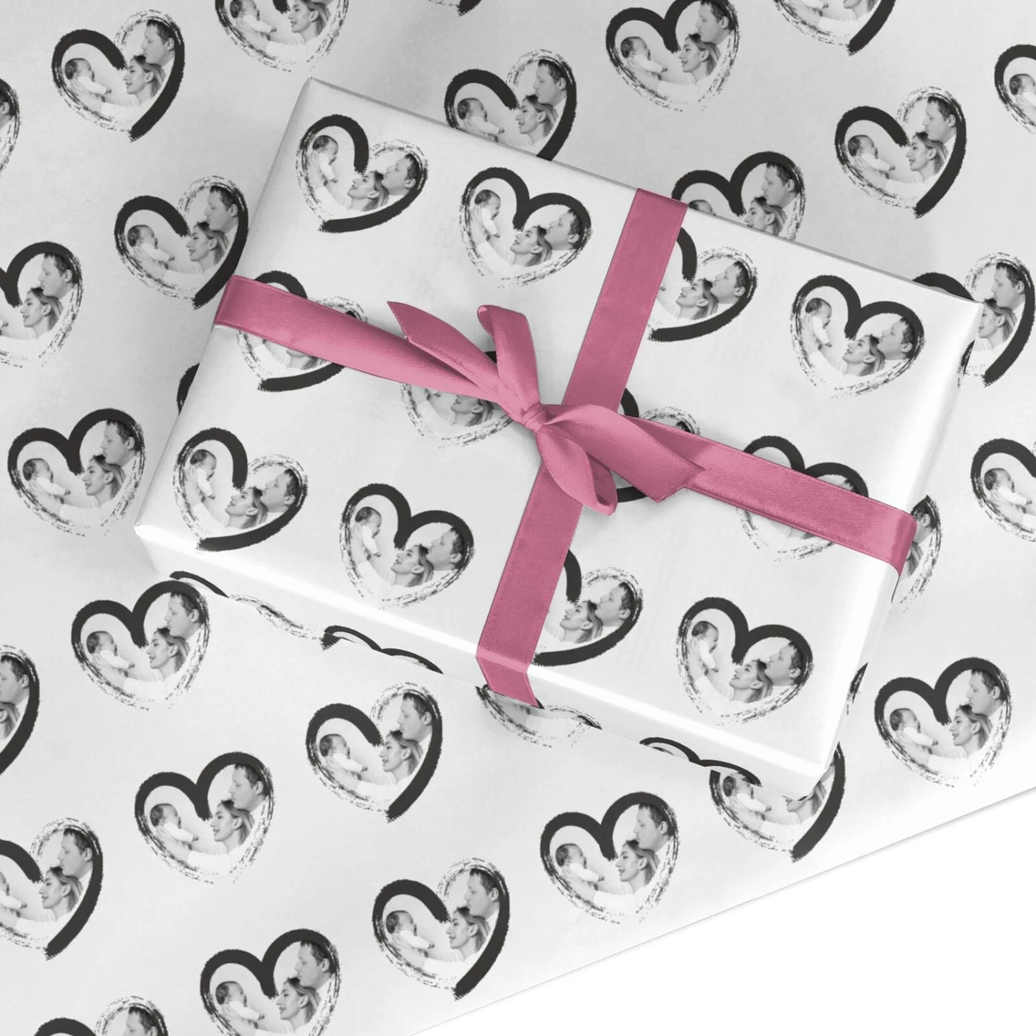 Our Valentines Day Photo Personalised Wrapping Paper is a great monochrome design, featuring a black heart with an enclosed photograph. Upload a black and white photo to this design to make a truly unique Valentine’s Day gift wrap.