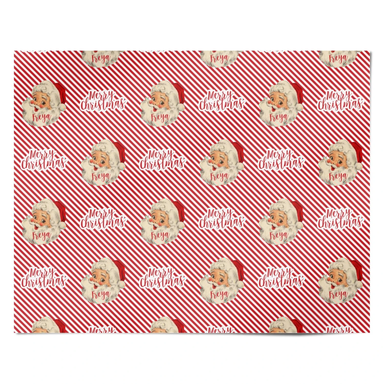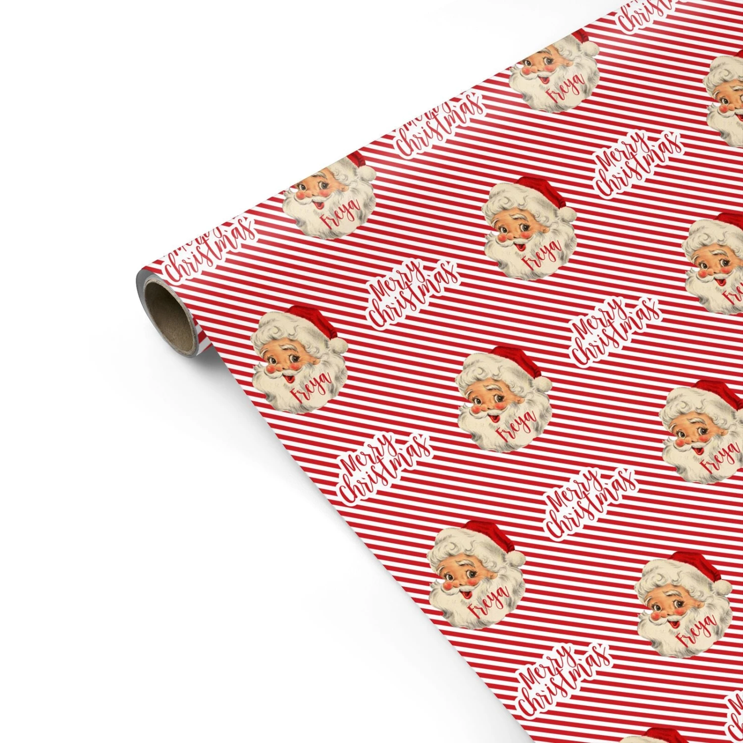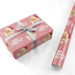 Our Vintage Santa Personalised Wrapping Paper is a nostalgic vintage looking Father Christmas, set on a red and white background. Customise with a name in our red decorative font. Create a Christmassy gift wrap with this design today.