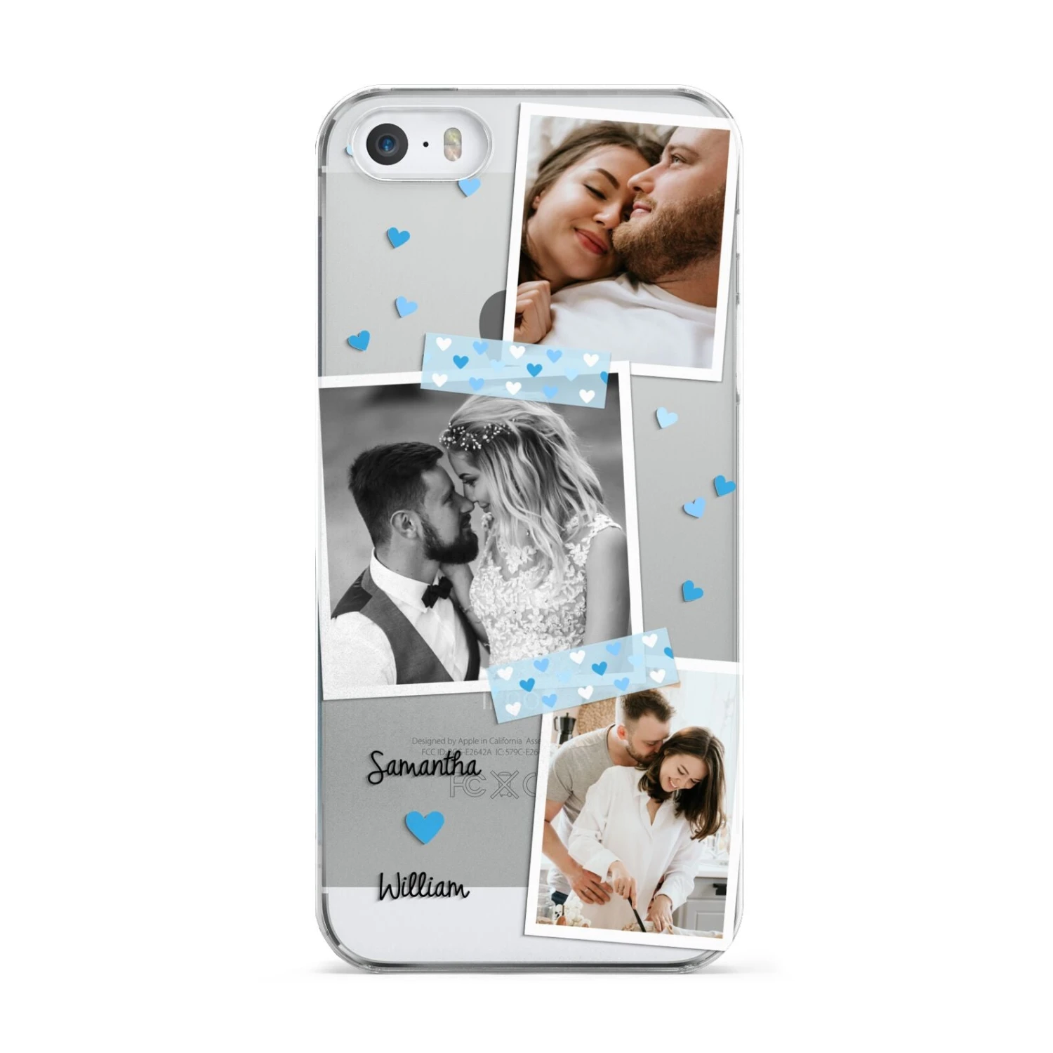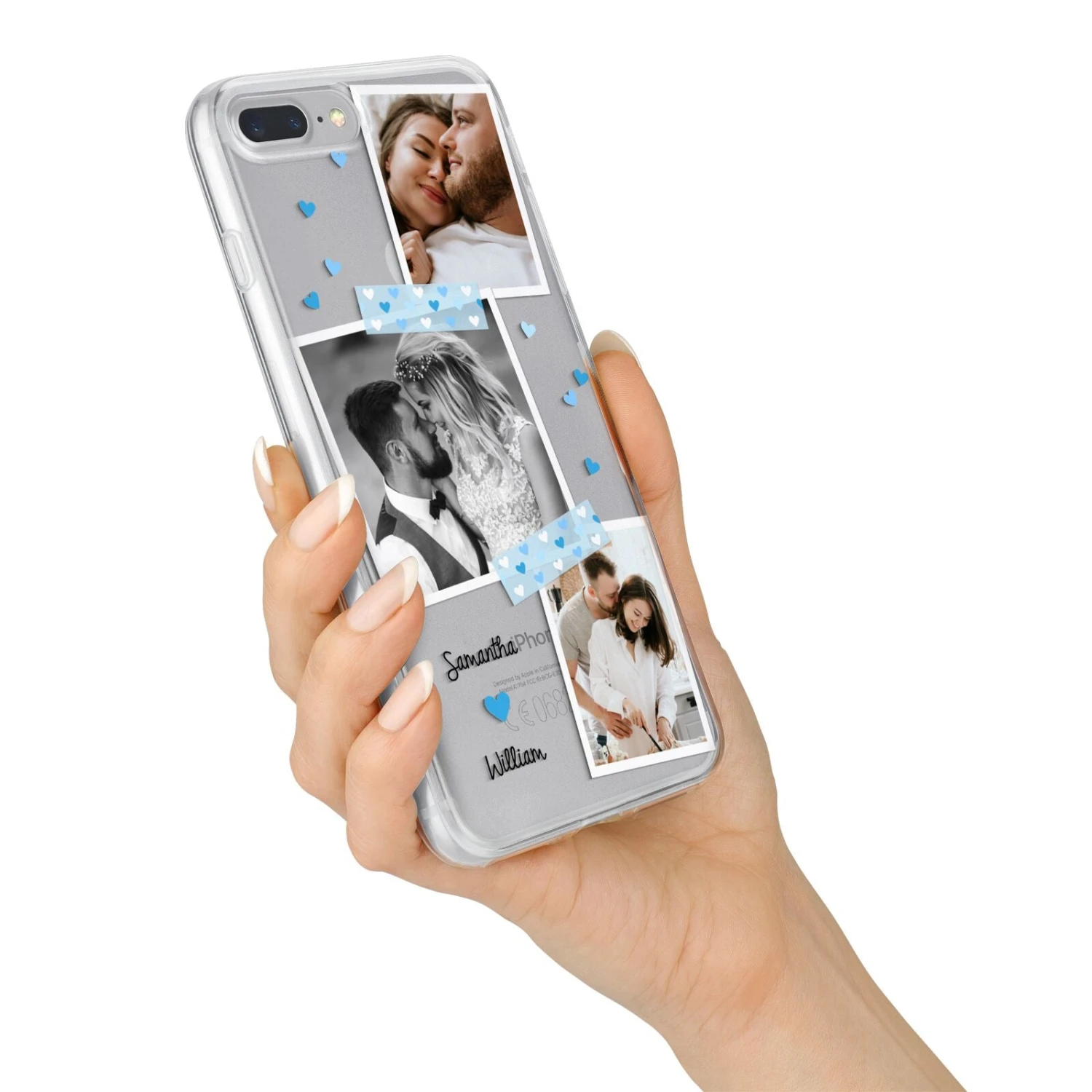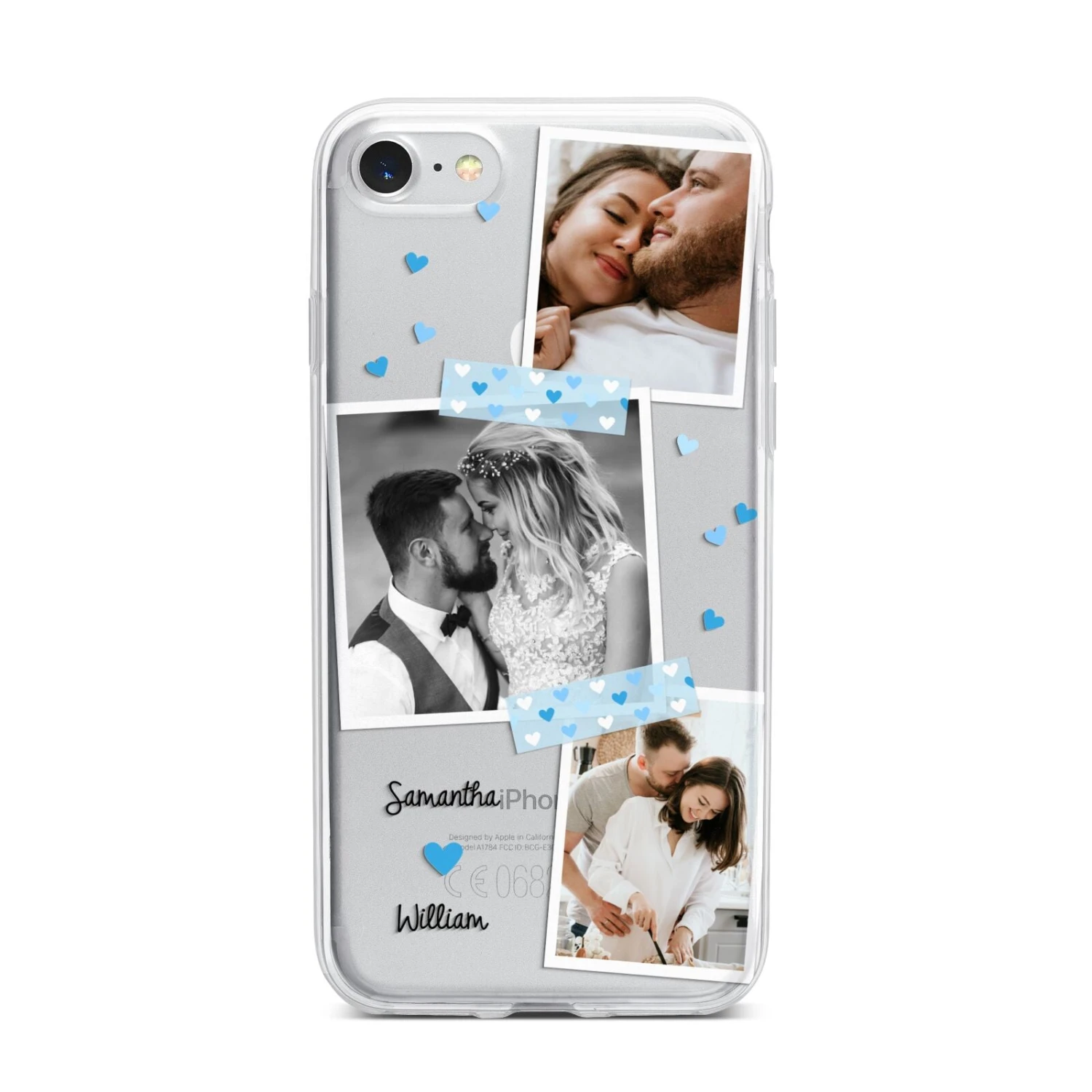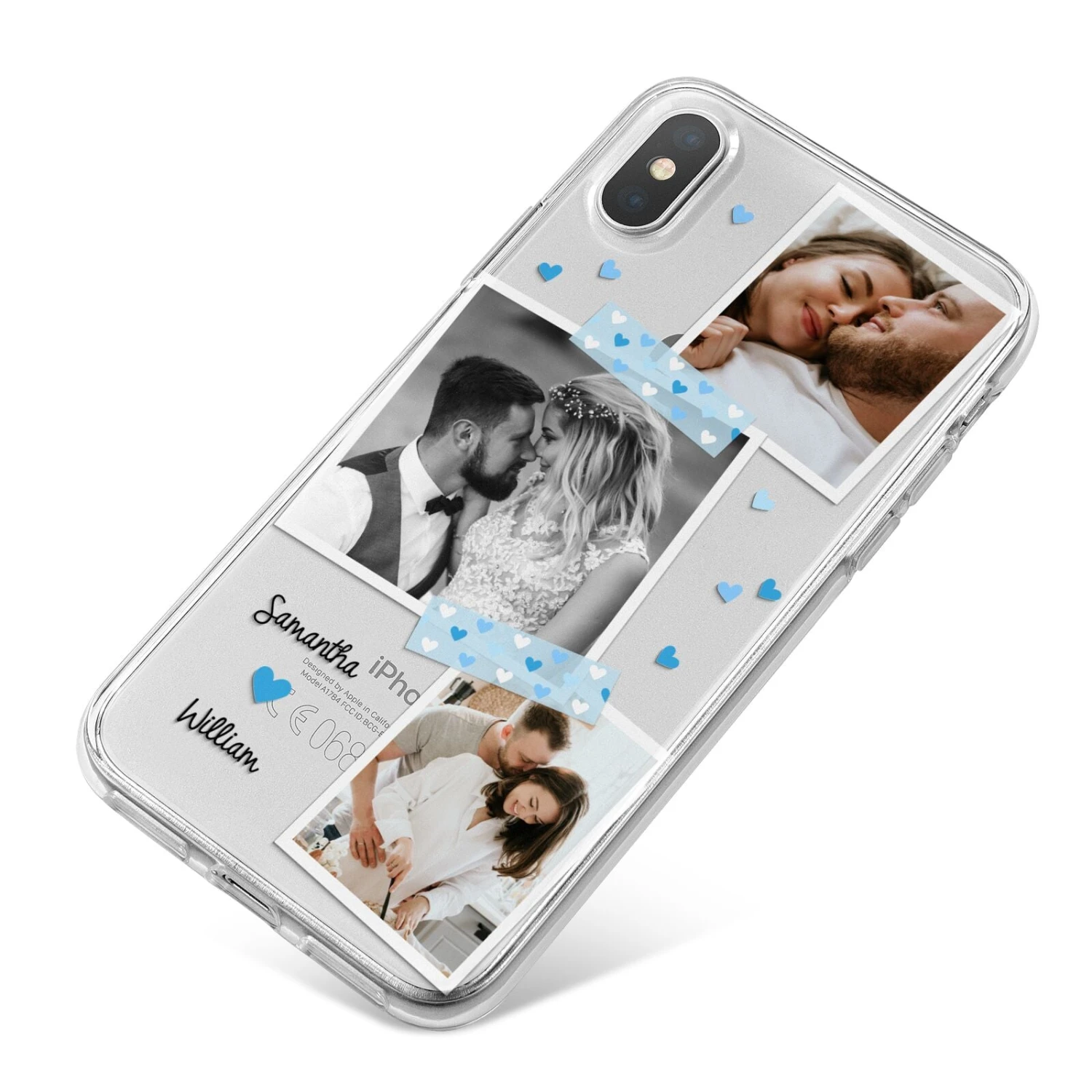Wedding Snaps Collage With Blue Hearts And Name IPhone Case