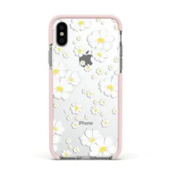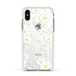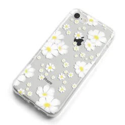 Our White Daisy Flower Apple iPhone Case is a stunning way to add a simple yet super effective floral print to your phone case. This delicate design features white daisies with golden yellow centres. As the design features a transparent background, you can see your device through the gaps in the artwork, which gives the impression of your device being embossed by these bright little flowers.