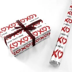 Add a touch of love to your gift-giving with this personalised XOXO Valentine’s wrapping paper. Featuring a repeating “XOXO” and heart design in red, interwoven with your custom message, it’s perfect for spreading romantic vibes. Personalise it with your unique text to create a truly thoughtful and memorable wrapping. Ideal for Valentine’s Day, anniversaries, or any special occasion to show your love.